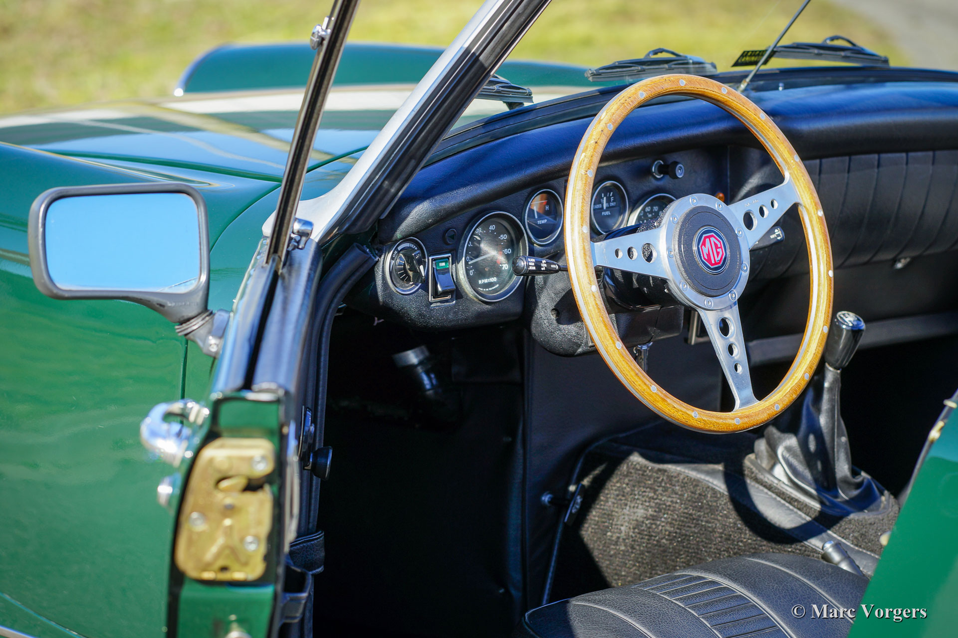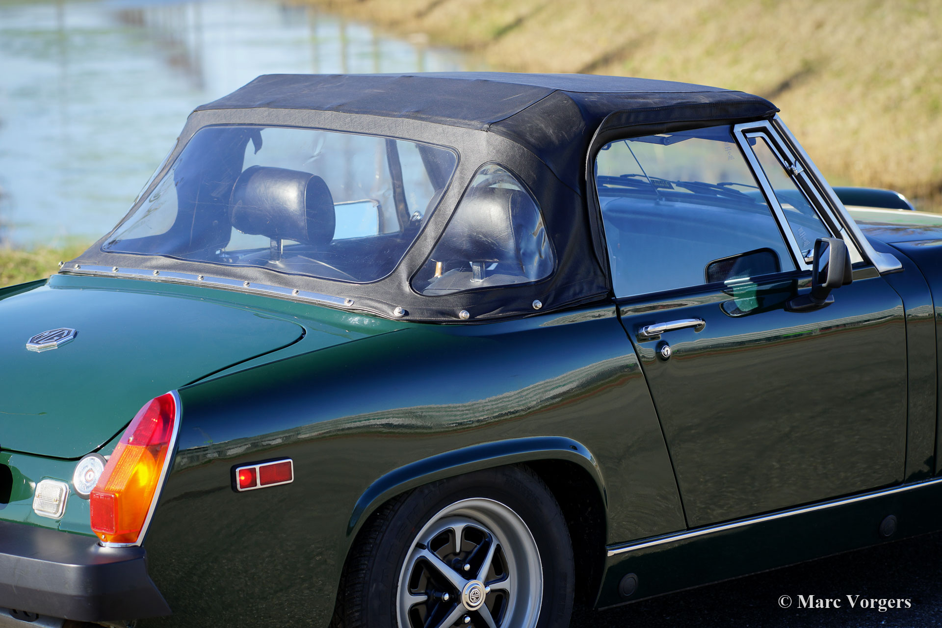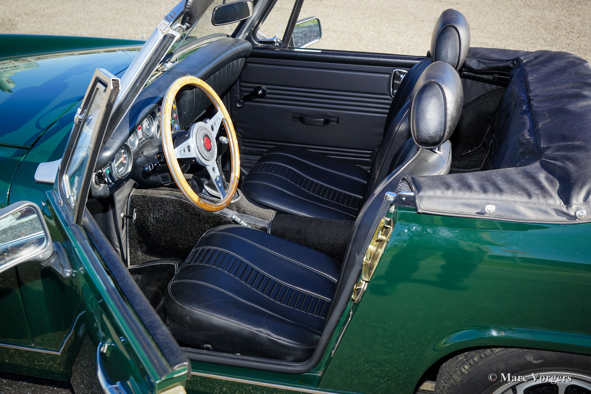 MG Midget 1500, jaar 1977. Kleur donker British Racing Green gecombineerd met een zwart kunstlederen interieur en zwart tapijt. Zwarte vinyl soft-top en kapafdekking. Deze MG Midget is nieuw verkocht in de USA, de auto is geïmporteerd uit Californië. Deze compacte open MG verkeert in excellente conditie en de auto rijdt perfect. Vorige eigenaar (s) hebben veel zorg geïnvesteerd in service en onderhoud van deze mooie auto. De carrosserie is vrij van corrosie en vertoont uitstekend lakwerk, het interieur is in uitstekende conditie met slechts zeer lichte gebruikssporen en de motorruimte is mooi schoon. De open rijervaring is heel bijzonder deze compacte MG Midget! De auto is voorzien van de krachtige en betrouwbare 1500 cc viercilindermotor, comfortabele stoelen met hoofdsteunen, een sportstuur met houten rand en de originele ‘Rostyle’ wielen.