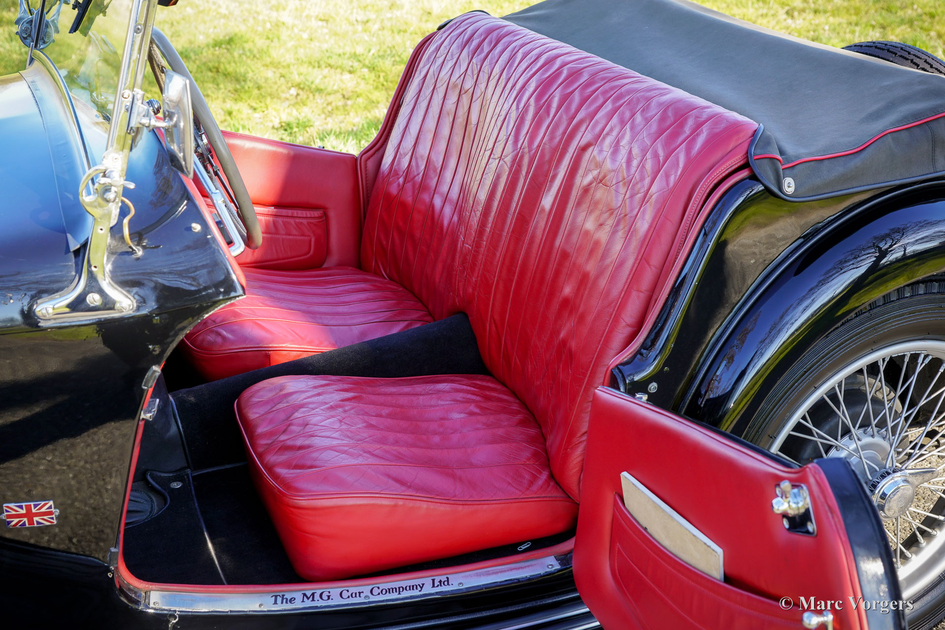 MG TC, jaar 1949. Kleur zwart gecombineerd met een roodlederen interieur afgewerkt met zwart tapijt. Zwarte mohair kap, zijruitframes en kapafdekking. Deze MC TC werd nieuw verkocht in de VS en is momenteel geregistreerd in Nederland. Volgens de titel van een boek over de MG T-serie waren het “The sports cars the world loved first”. Amerikaanse soldaten uit de Tweede Wereldoorlog waren helemaal weg van de lichte, compacte en wendbare MG T-serie auto's en velen werden na de oorlog naar de VS verscheept. Vanaf de naoorlogse MG TC werd de Britse sportwagen een bestseller in de Verenigde Staten. Dit prachtige exemplaar is in het verleden gerestaureerd en de motor is gereviseerd. De auto verkeert in een zeer goede conditie en rijdt voortreffelijk! Deze MG TC toont prachtige originele details en enkele lichte sporen van gebruik. De mechanica heeft een aantal upgrades gekregen met de montage van een krachtigere moderne startmotor, aangepaste (lichtere en nauwkeurigere) stuurinrichting en een uitlaatspruitstuk met vrije doorstroming om de motorprestaties te verbeteren. De auto is uitgerust met nieuwe 19-inch spaakwielen met Dunlop 4.50 x 19 banden. Deze prachtige MG TC biedt een fantastische klassieke rijervaring. Het zicht op het houten dashboard met zijn reeks chromen meters en de blik over de motorkap nemen je mee terug naar de gouden jaren van het pure autorijden!