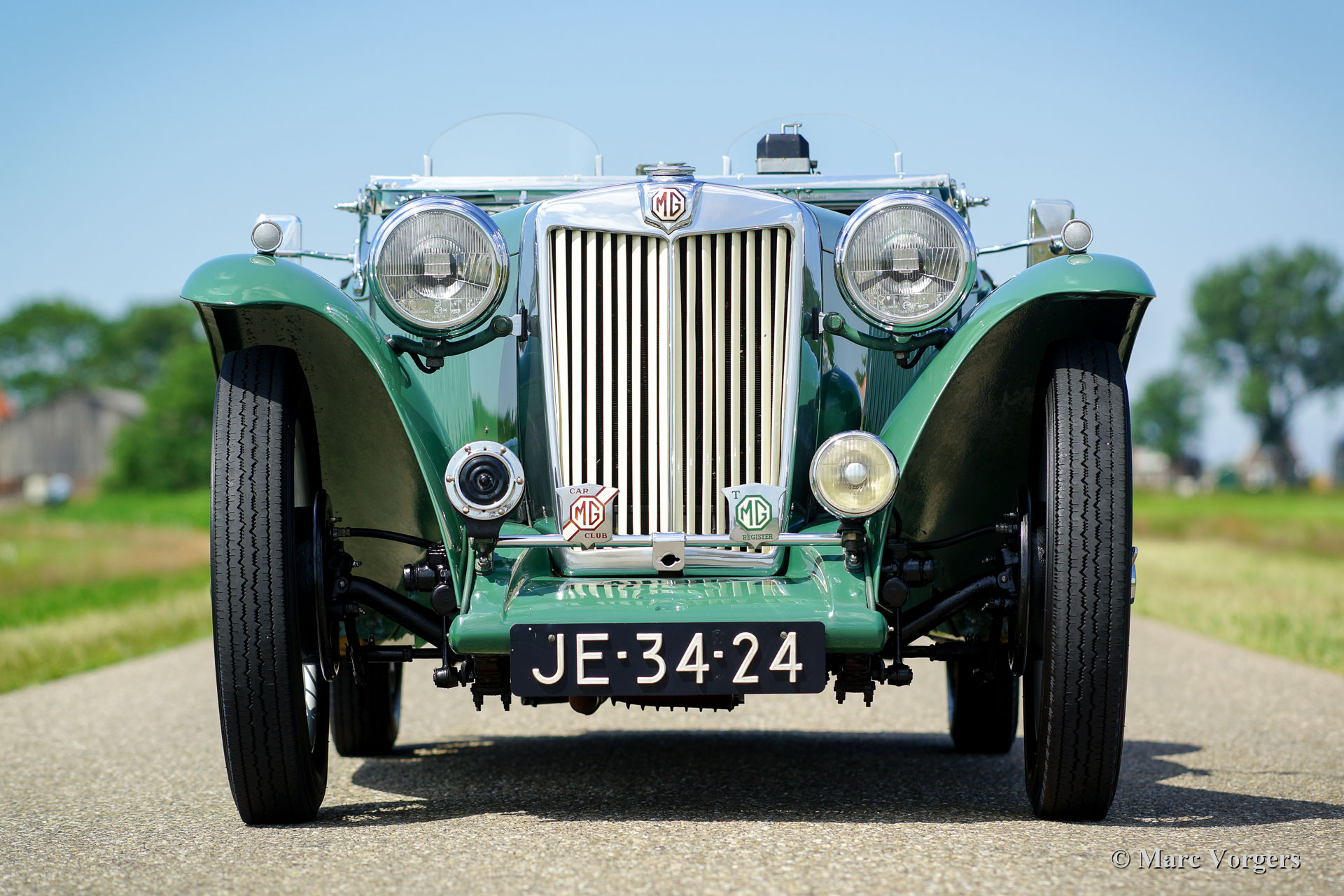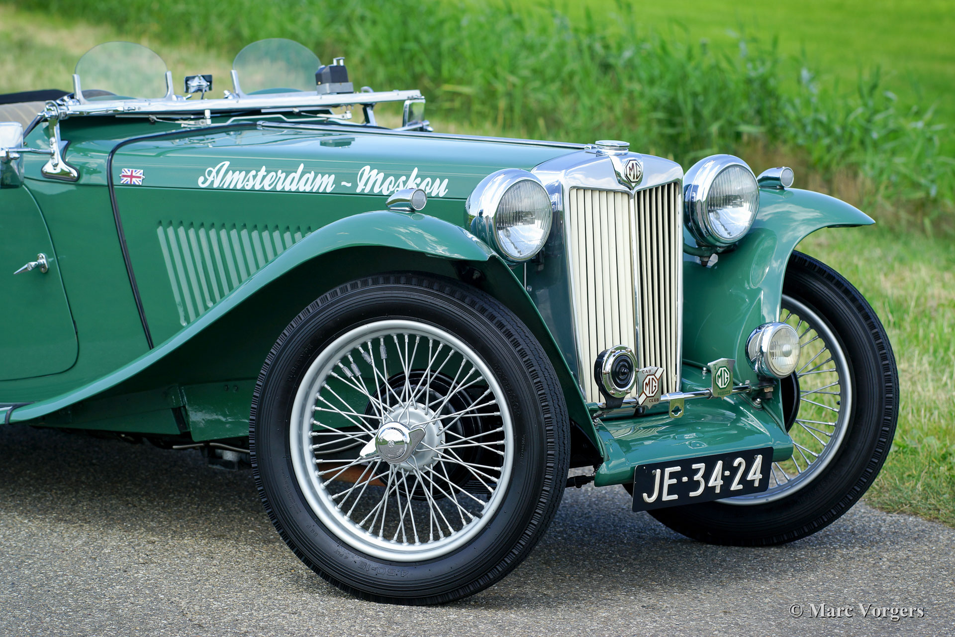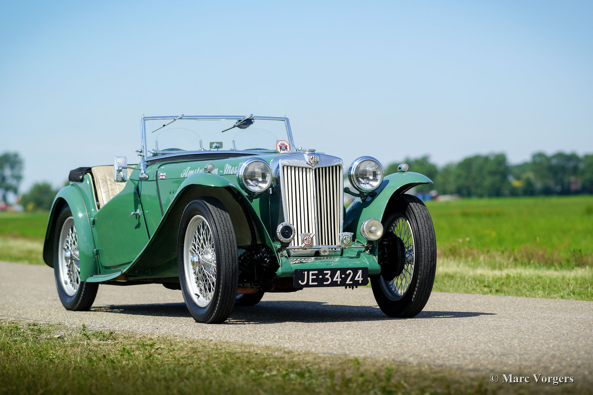 MG TC “Midget”, jaar 1948. Kleur ‘Almond Green’ met een beige leren interieur. Beige canvas kap, side-screens en een zwarte tonneau-cover. Deze magnifieke MG TC werd in het verleden in Nederland uitvoerig gerestaureerd. De laatste eigenaar heeft deze schoonheid al meer dan 40 jaar gekoesterd! De auto en de vorige eigenaar hebben veel van de wereld gezien, de auto heeft zelfs over het Rode Plein in Moskou gereden. Deze fantastische MG TC verkeert in excellente conditie met een licht ‘vintage’ patina in het interieur. Onlangs is de stuurinrichting gereviseerd. De auto is uitgerust met een Brooklands stuurwiel, Brooklands race-ruiten, een walnoothouten dashboard, 19-inch spaakwielen, het originele luchtfilter, de originele Lucas-mistlamp en een roestvrijstalen uitlaat. Dit is een zeer begeerlijke MG TC en een geweldige rijdersauto! Ervaar de ongefilterde en pure vooroorlogse rijervaring met deze prachtige MG “Midget”!