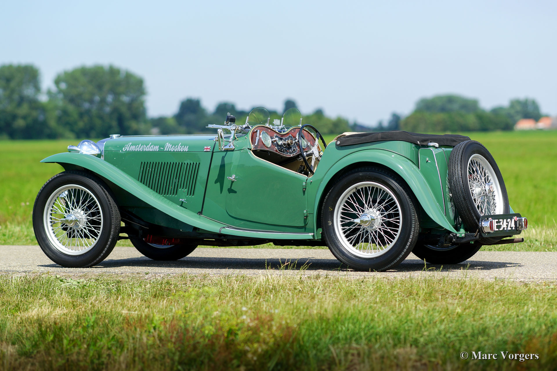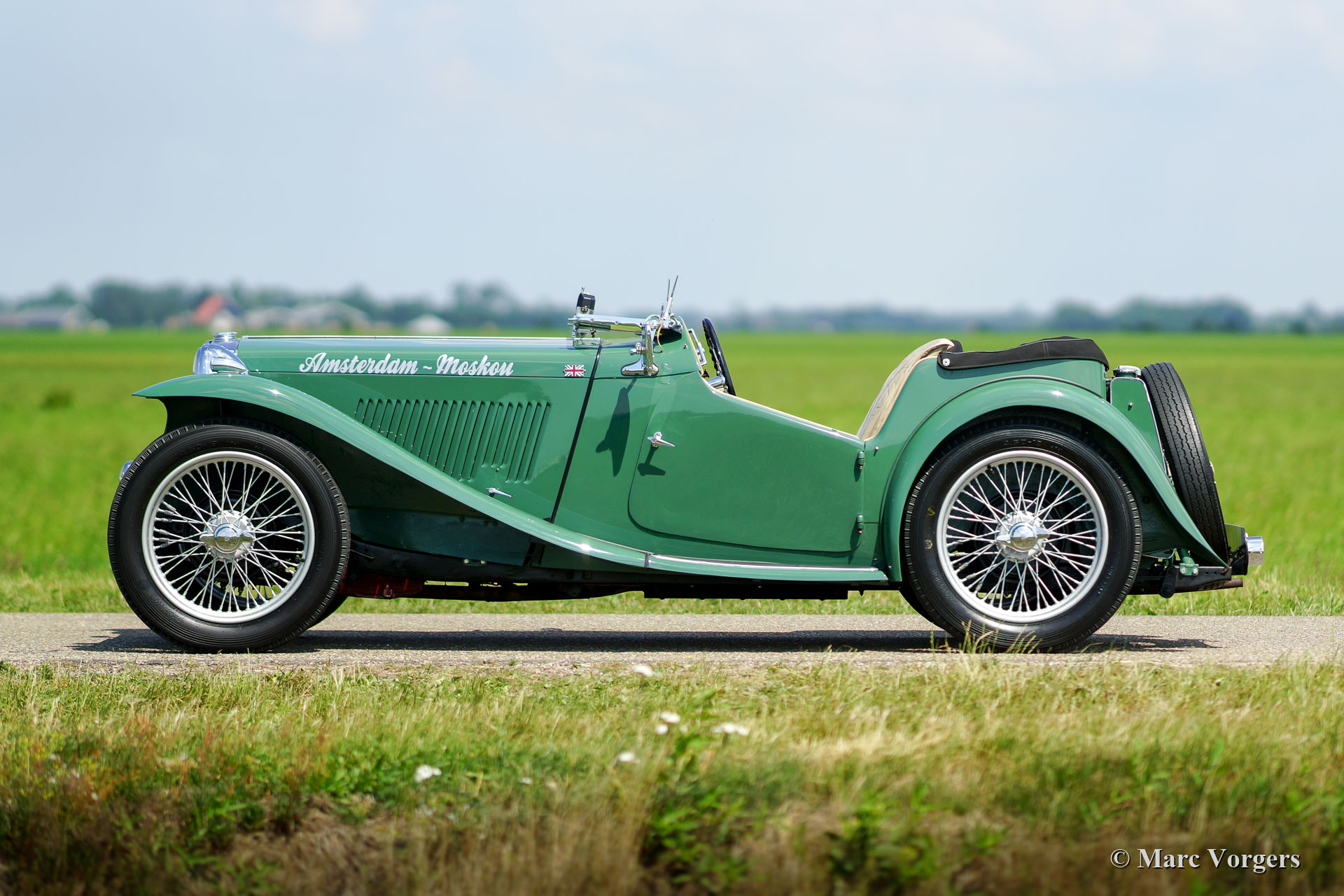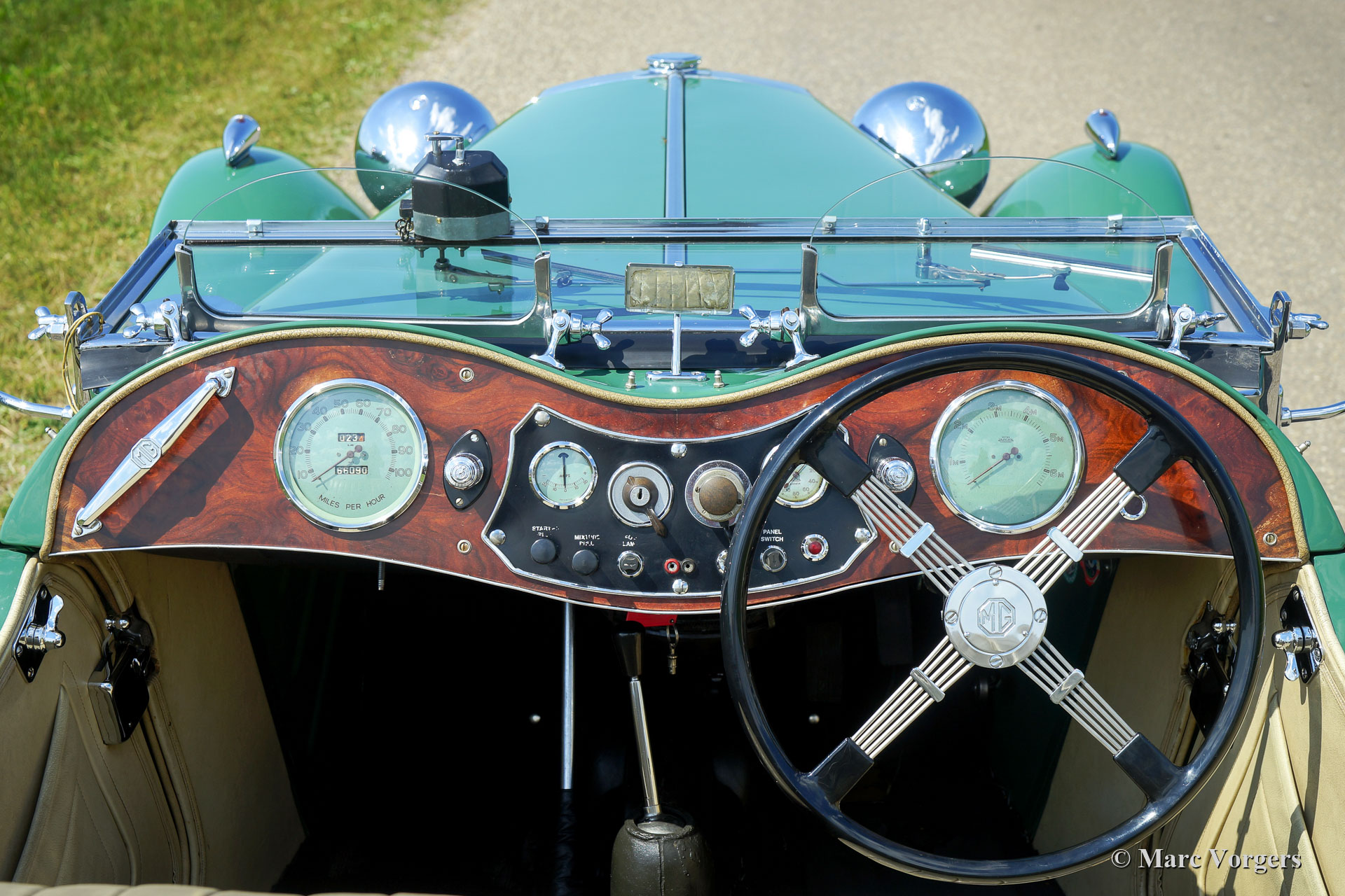 MG TC “Midget”, jaar 1948. Kleur ‘Almond Green’ met een beige leren interieur. Beige canvas kap, side-screens en een zwarte tonneau-cover. Deze magnifieke MG TC werd in het verleden in Nederland uitvoerig gerestaureerd. De laatste eigenaar heeft deze schoonheid al meer dan 40 jaar gekoesterd! De auto en de vorige eigenaar hebben veel van de wereld gezien, de auto heeft zelfs over het Rode Plein in Moskou gereden. Deze fantastische MG TC verkeert in excellente conditie met een licht ‘vintage’ patina in het interieur. Onlangs is de stuurinrichting gereviseerd. De auto is uitgerust met een Brooklands stuurwiel, Brooklands race-ruiten, een walnoothouten dashboard, 19-inch spaakwielen, het originele luchtfilter, de originele Lucas-mistlamp en een roestvrijstalen uitlaat. Dit is een zeer begeerlijke MG TC en een geweldige rijdersauto! Ervaar de ongefilterde en pure vooroorlogse rijervaring met deze prachtige MG “Midget”!