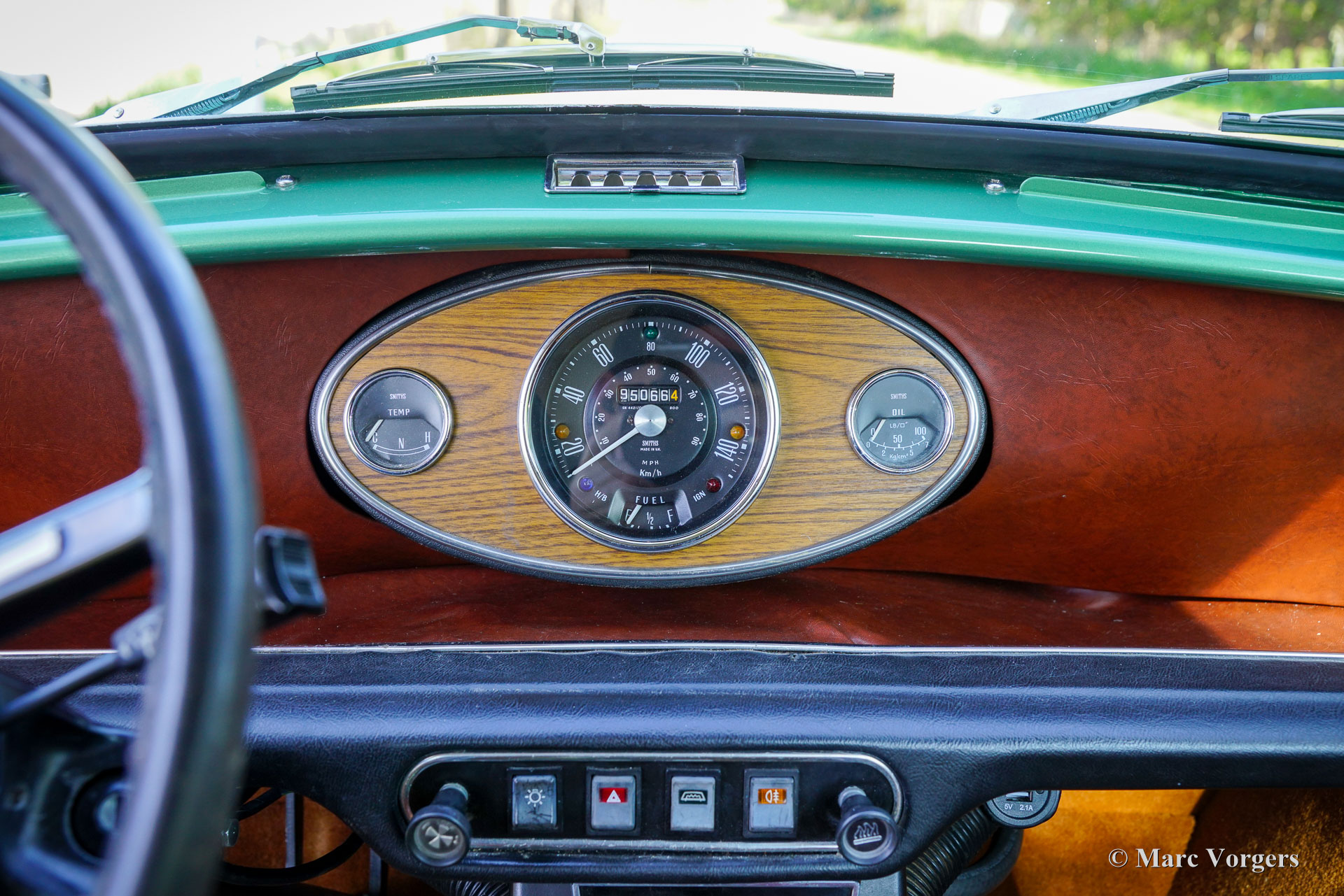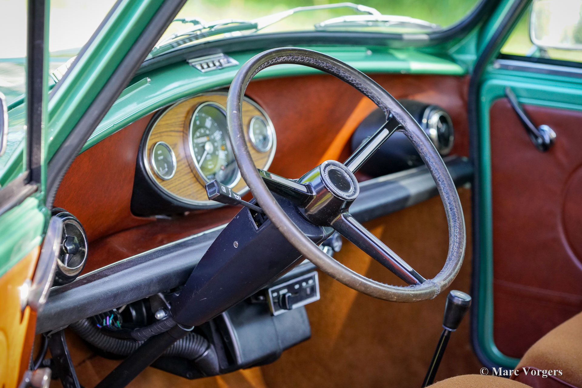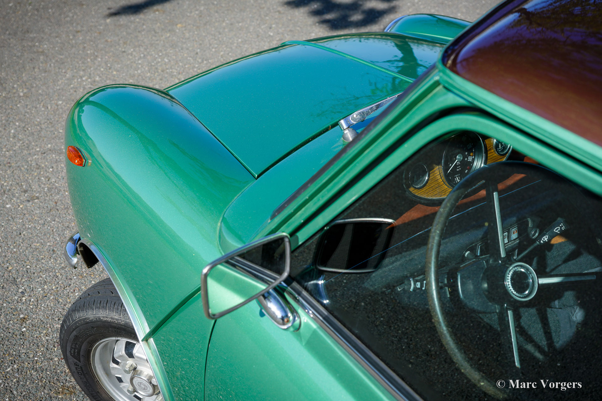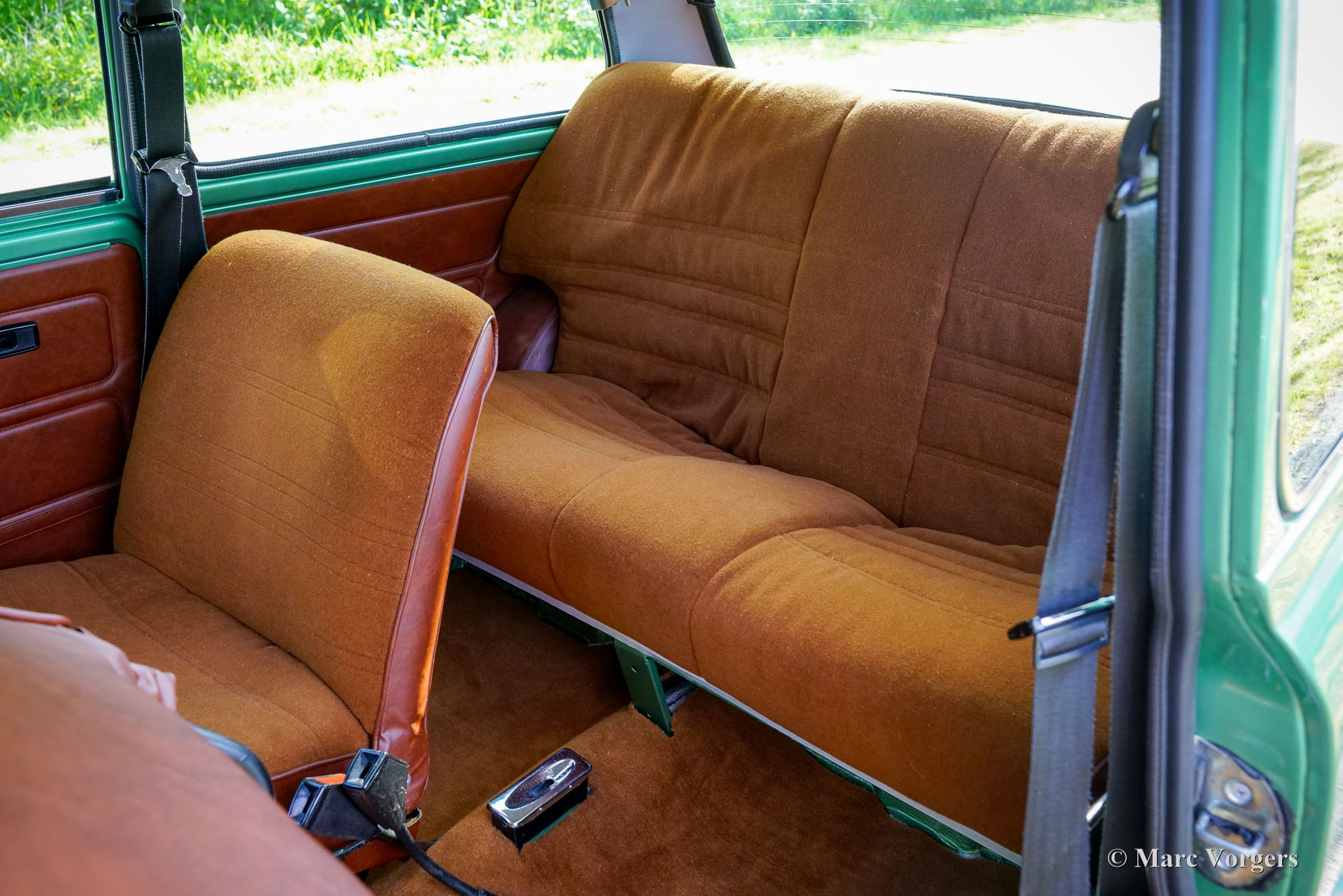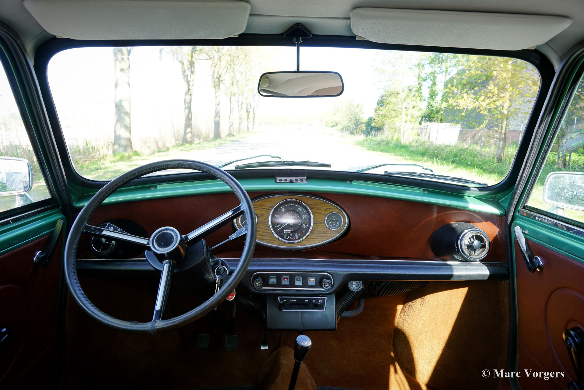 Mini Special 1100, jaar 1976. Deze prachtige Mini is uitgevoerd in metallic groen met een metallic bruin dak en een luxe bruin stoffen interieur. De Mini Special 1100 is een speciale versie die in 1979 werd geïntroduceerd ter ere van het 20-jarig jubileum van de Mini. Deze lichtgroene Special 1100 werd geassembleerd in België en vervolgens nieuw verkocht in Nederland. Deze charmante Mini Special wordt sinds 2009 gekoesterd door de laatste eigenaar en de kilometerteller staat nu op 95.000 kilometer. Omdat de auto wat roestplekken vertoonde, besloot de eigenaar het plaatwerk te laten repareren en opnieuw te laten spuiten. Dit project groeide uit tot een uitgebreide restauratie en revisie door een professionele specialist in de periode 2020-2024. Een fotoreportage van de restauratie is beschikbaar. Deze Mini Special 1100 verkeert in uitstekende staat en rijdt perfect! De gereviseerde 1098 cc motor levert 46 pk, wat de Mini een pittige rijervaring geeft! Het vernieuwde remsysteem met trommelremmen rondom brengt de lichte auto in een oogwenk tot stilstand. De klassieke Mini is een iconische Britse auto die bij zijn introductie in 1959 voor veel opwinding zorgde. Ook nu nog zijn er veel liefhebbers van deze leuke kleine auto, die een opmerkelijk ruim interieur biedt. Rijden in een klassieke Mini is een zeer plezierige ervaring. En zeker ook in het huidige verkeer wordt de Mini gerespecteerd door andere weggebruikers. De kwaliteit en originaliteit van deze Mini Special 1100 zijn uniek. Opvallende details van de Special 1100 zijn onder andere het eenvoudige centrale dashboard afgewerkt met luxe houtfineer en het originele stuurwiel bekleed met zwart leer. Deze Mini is uitgerust met een trekhaak, zodat een kleine bagage- of boottrailer in stijl kan worden getrokken voor een weekendtrip of korte vakantie! De restauratiekosten overstijgen de vraagprijs ruimschoots. Dit is een unieke kans om een prachtig gerestaureerde Mini Special 1100 te kopen!