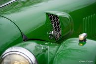 Morgan 4/4, jaar 1963. Kleur groen gecombineerd met een zwartlederen interieur, zwart tapijt, zwarte soft-top en een zwarte tonneau cover. Deze klassieke Morgan is voorzien van een prachtig gevormde bank die veel comfort biedt in deze pure Britse sportwagen. Deze prachtige Morgan 4/4 (serie IV) werd nieuw verkocht in Groot-Brittannië. Het is een zeldzaam model waarvan er slechts 209 met de hand zijn gebouwd. In 1975 is de auto naar Nederland geïmporteerd en opgeknapt. Oorspronkelijk was de auto voorzien van een 1340 cc Ford Consul viercilinder motor, de motor is vervangen door een 1500 cc motor van het type dat ook in de Morgan 4/4 serie V gebruikt wordt. Deze krachtige en betrouwbare motor is voorzien van een dubbele Weber carburateur en levert een gezonde 84 pk. Het vermogen wordt overgebracht op de achterwielen via een handgeschakelde vierversnellingsbak. In de jaren 2001-2004 is de auto uitvoerig en prachtig gerestaureerd naar topstaat. De auto (die origineel rood was) is daarbij gespoten in de huidige groene kleur. De restauratie is volledig gedocumenteerd met een fotoreportage en facturen. Het chassis is vernieuwd, evenals de kabelboom. Er werd een RVS uitlaat gemonteerd, een aluminium benzinetank en elektronische ontsteking. Ook werd er een toerenteller in het dashboard gemonteerd. De auto toont veel mooie originele details zoals de zeldzame 15 inch stalen velgen met chromen wieldoppen! Verder is aan de voorzijde een Lucas SFT mistlamp gemonteerd en aan de achterzijde een kofferrek. Deze rechtsgestuurde Morgan 4/4 is een schoonheid, en de auto rijdt en stuurt perfect! Een zeer begerenswaardig exemplaar!