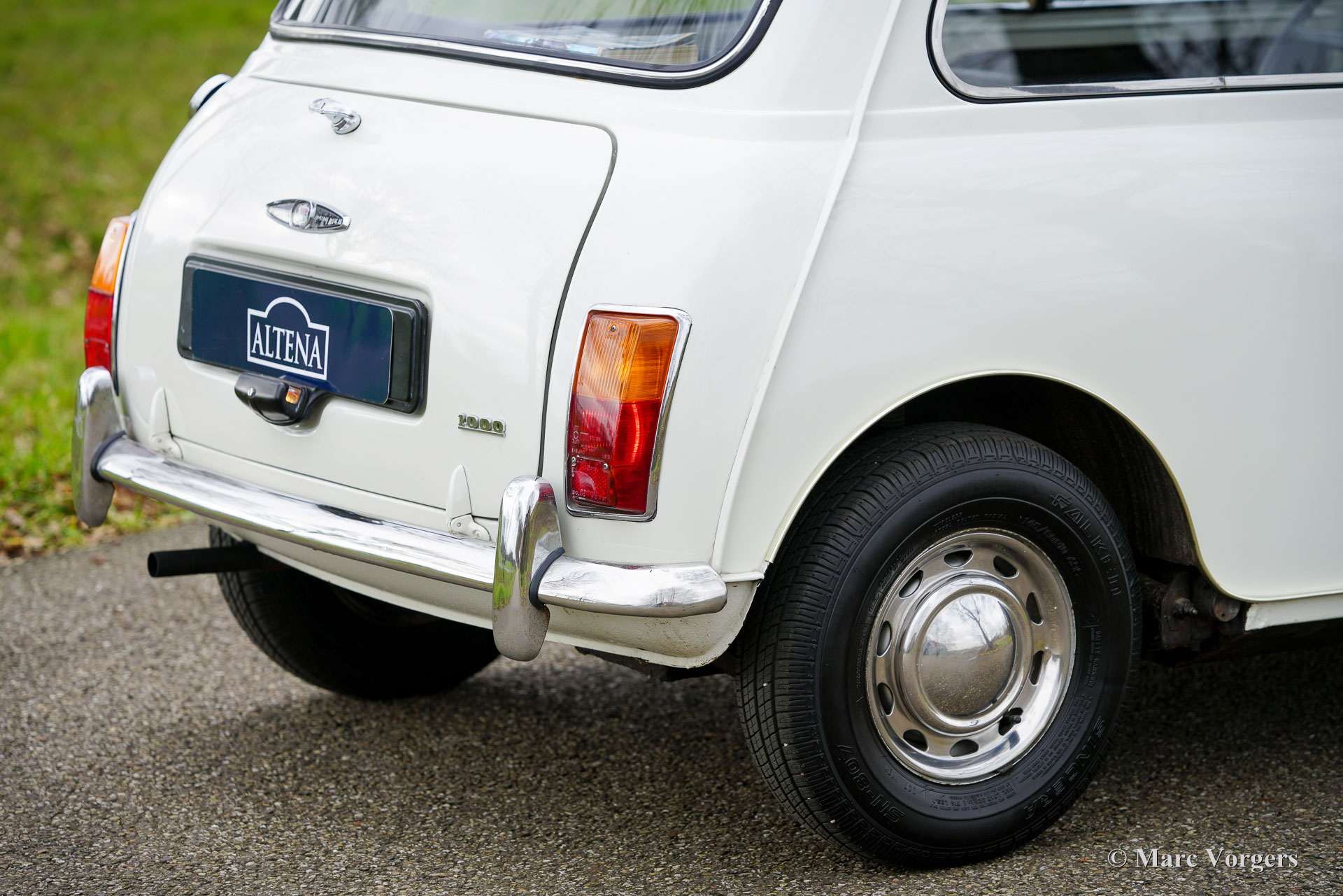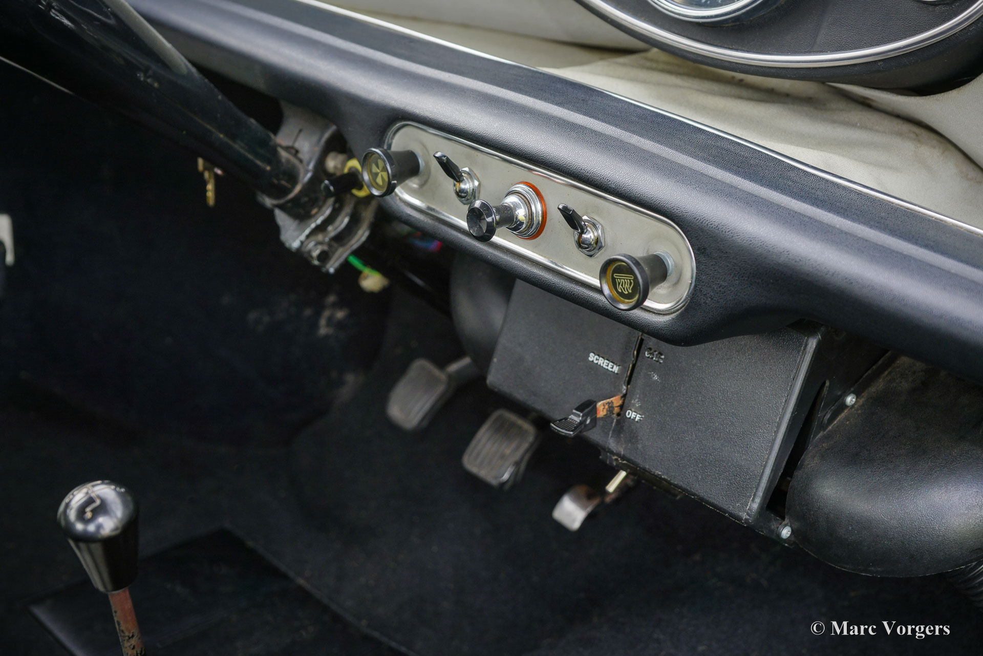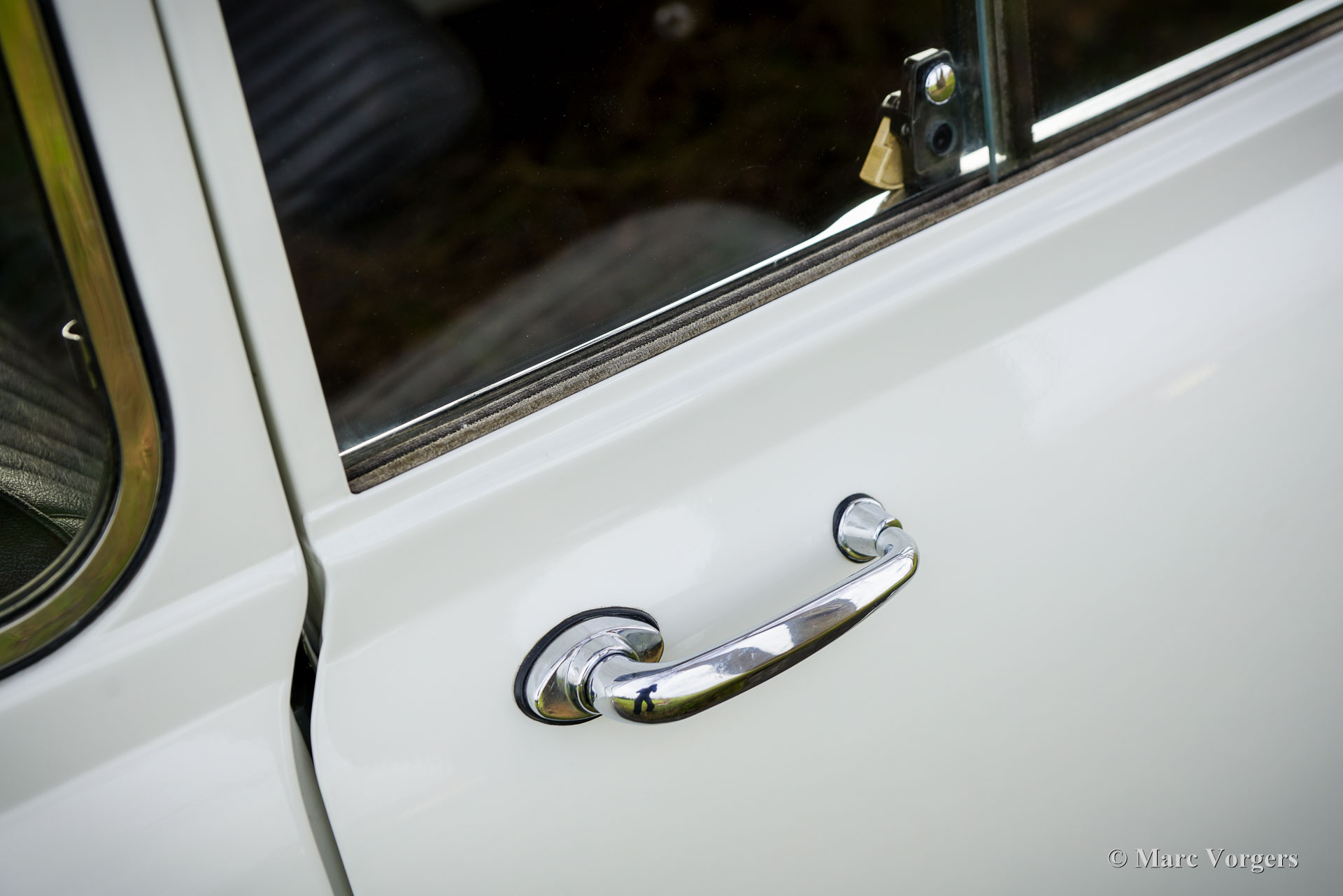 Morris Mini 1000 Mk II, jaar 1969. Kleur gebroken wit (Old English White) gecombineerd met een zwart vinyl interieur afgezet met zwart tapijt. Deze prachtige Morris Mini wordt geleverd met een volledig bekende en gedocumenteerde historie vanaf nieuw! De auto werd nieuw verkocht in Frankrijk, de volgende eigenaar was de Frans-Hongaarse kunstenaar Victor Vasarely. Vanaf nieuw heeft de auto slechts 48.800 kilometer gereden. Deze begeerlijke Morris Mini werd in het jaar 2000 in Nederland geïmporteerd en heeft slechts één zorgzame eigenaar gehad. Altena Classic Service heeft de Mini rechtstreeks van de eigenaar gekocht. Begin jaren 2000 werd de Mini gedemonteerd, opgeknapt, en nieuw gespoten. Van de werkzaamheden zijn foto’s aanwezig. Ook aanwezig is de oude Franse registratiekaart, een dossier met servicefacturen en documenten, en Franse en Nederlandse gebruikershandleidingen. Bovendien wordt de auto geleverd met een selectie reserveonderdelen. Deze begeerlijke Morris Mini 1000 Mk II is een fantastische tijdcapsule en een prachtig verzamelobject waar de nieuwe eigenaar veel plezier aan zal beleven. Deze Morris Mini rijdt voortreffelijk!
