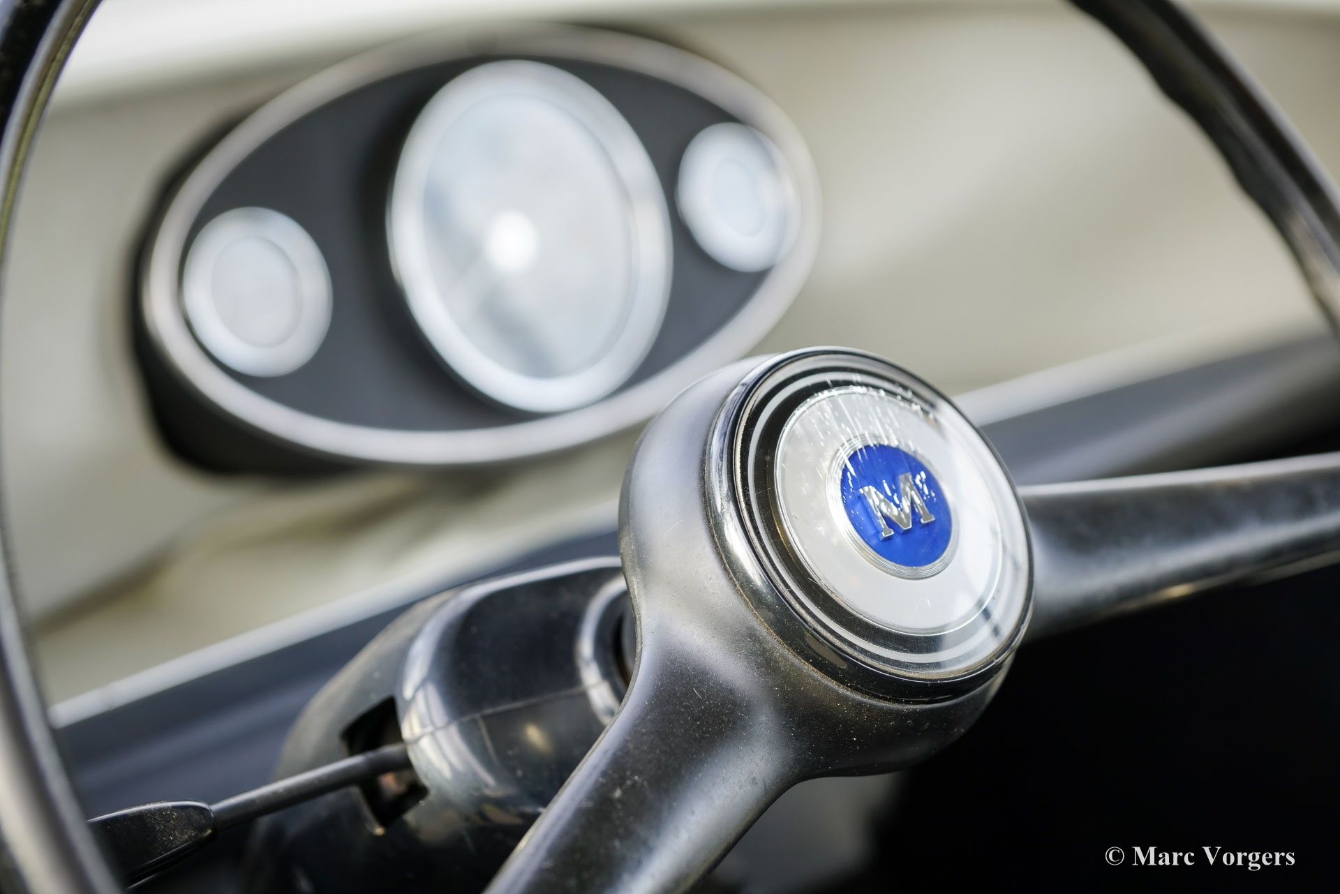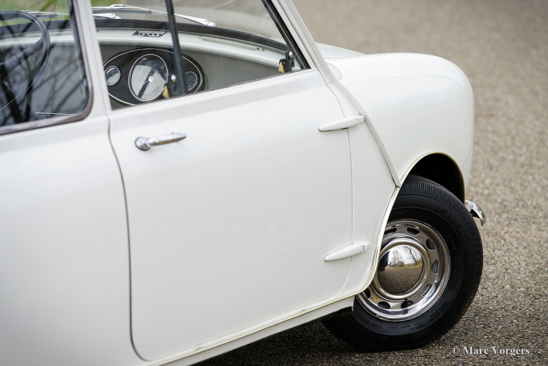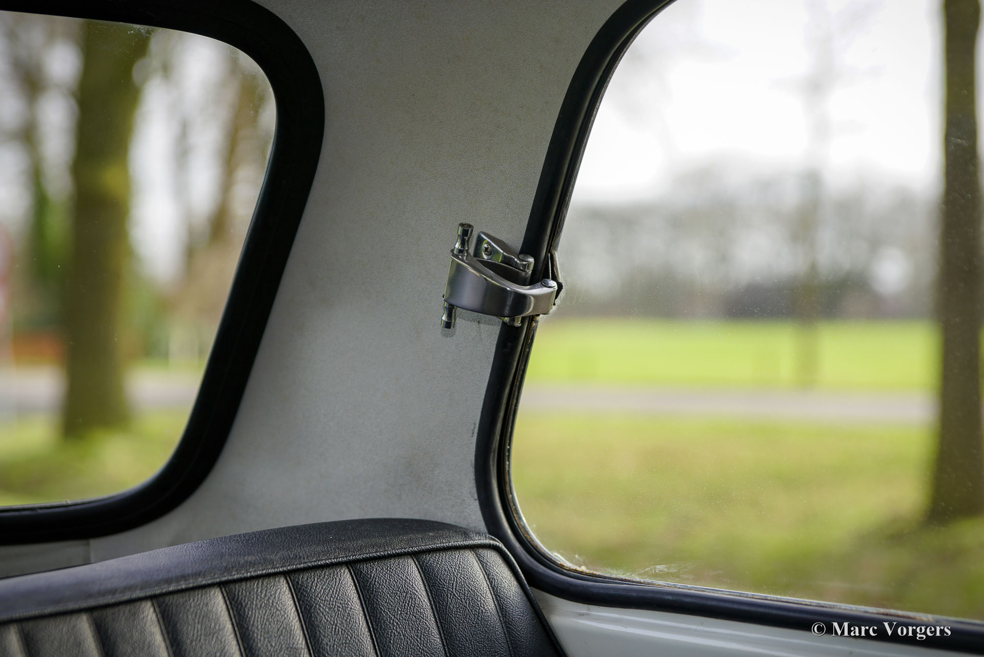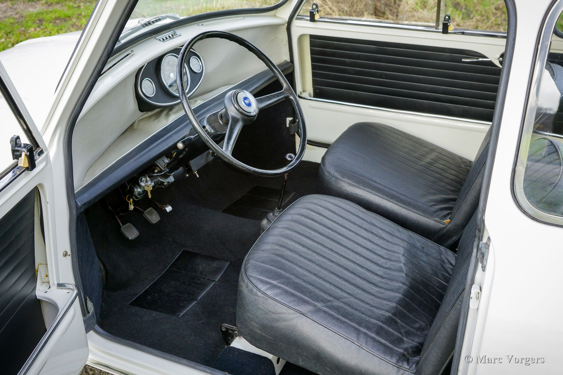 Morris Mini 1000 Mk II, jaar 1969. Kleur gebroken wit (Old English White) gecombineerd met een zwart vinyl interieur afgezet met zwart tapijt. Deze prachtige Morris Mini wordt geleverd met een volledig bekende en gedocumenteerde historie vanaf nieuw! De auto werd nieuw verkocht in Frankrijk, de volgende eigenaar was de Frans-Hongaarse kunstenaar Victor Vasarely. Vanaf nieuw heeft de auto slechts 48.800 kilometer gereden. Deze begeerlijke Morris Mini werd in het jaar 2000 in Nederland geïmporteerd en heeft slechts één zorgzame eigenaar gehad. Altena Classic Service heeft de Mini rechtstreeks van de eigenaar gekocht. Begin jaren 2000 werd de Mini gedemonteerd, opgeknapt, en nieuw gespoten. Van de werkzaamheden zijn foto’s aanwezig. Ook aanwezig is de oude Franse registratiekaart, een dossier met servicefacturen en documenten, en Franse en Nederlandse gebruikershandleidingen. Bovendien wordt de auto geleverd met een selectie reserveonderdelen. Deze begeerlijke Morris Mini 1000 Mk II is een fantastische tijdcapsule en een prachtig verzamelobject waar de nieuwe eigenaar veel plezier aan zal beleven. Deze Morris Mini rijdt voortreffelijk!