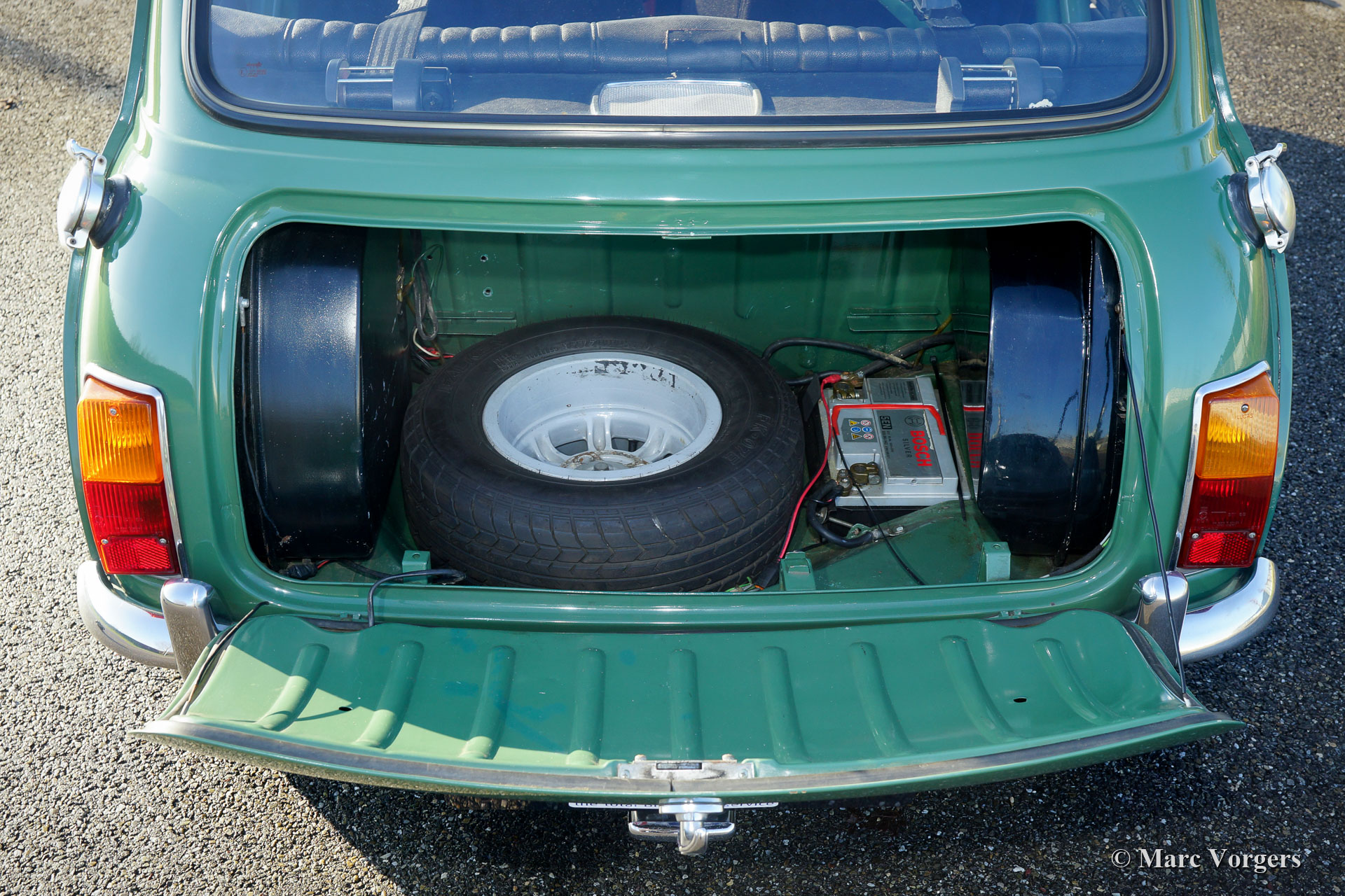 Een extra benzinetank rechts (originele 1968 optie), nu 50 liter benzinecapaciteit, twee ‘snelvul’ tankdoppen, rolkooi met uitneembare horizontale balk, Cobra-kuipstoelen, OMP 4-punts veiligheidsgordels met gordelspanners op de hoedenplank, Smiths toerenteller, Halda Tripmaster, Halda Speedpilot, 'gemotteld' aluminium dashboardpaneel, Sparco pedalen, brandblusser geplaatst voor de bestuurdersstoel, 12V hoofdschakelaar, flexibele (navigator) kaartleeslamp, twee Lucas LR14 vérstralers aan de voorzijde, Minilite 10-inch lichtmetalen velgen, carterbeschermplaat, sportstuur met leren rand, een origineel rally-imperiaal, leren veiligheidsriem op de motorkap, langere dashboardschakelaars, achterruitverwarming en achteruitrijlamp. De auto wordt geleverd met twee sleutel-sets. Deze magnifieke Mini Cooper is klaar voor elk nieuw avontuur!