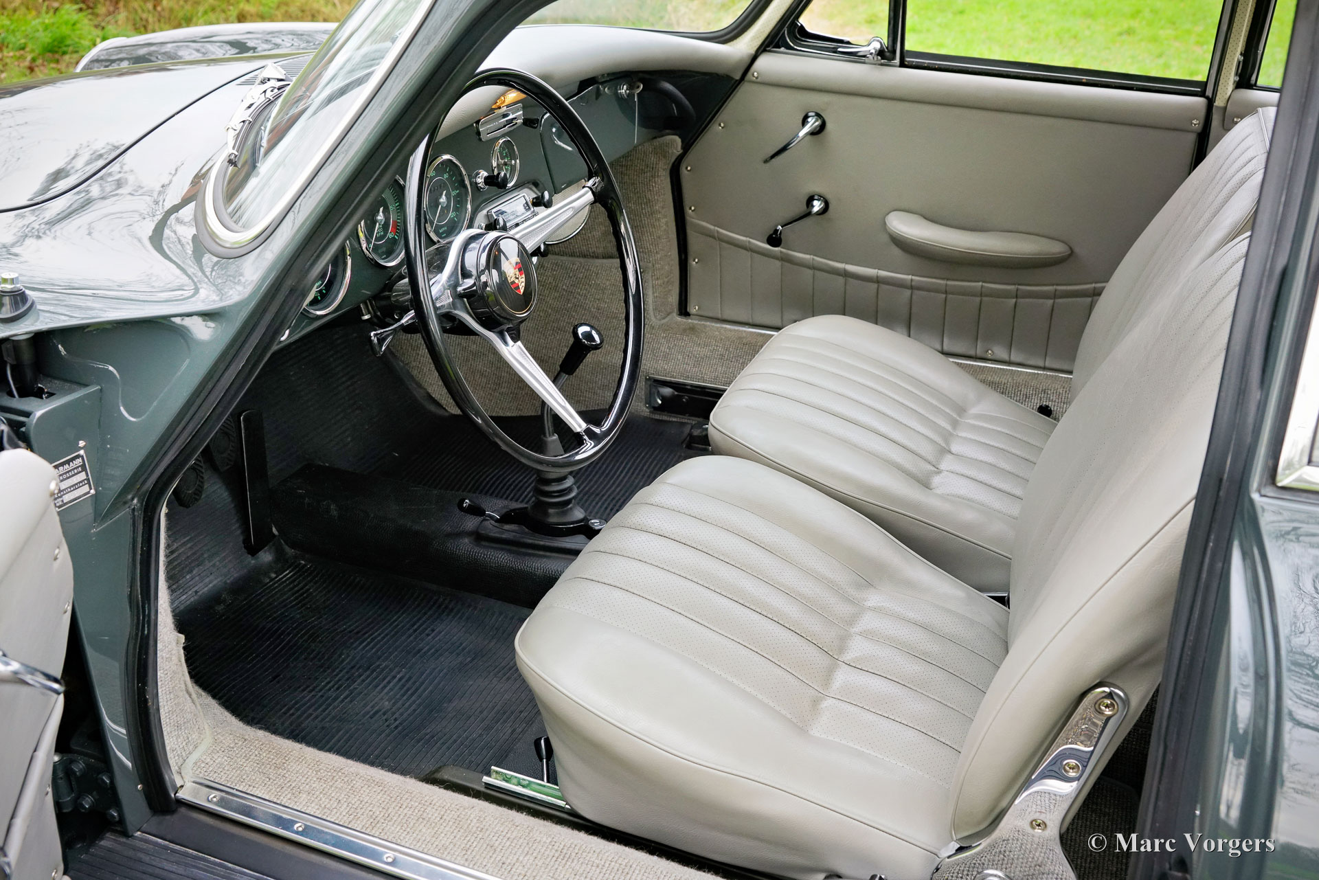 Porsche 356 1600 SC, jaar 1964. Kleur grijs (Schiefer Grau, kleurcode 6401) gecombineerd met een lichtgrijs lederen interieur en bijpassend tapijt. Deze prachtige en fantastisch rijdende Porsche 356 verkeert in een sublieme TOP-conditie (concours)! De auto is tot in de puntjes gerestaureerd door een Porsche specialist. Elk detail is gerestaureerd naar de originele fabrieksspecificaties. De carrosserie toont strakke lijnen en een perfecte passing van de panelen. Het motorcompartiment en het interieur tonen onberispelijke originele details. De onderkant is ook in een prachtige staat. Het dashboard ziet er prachtig uit en is compleet met een periodecorrecte Becker Avus-radio. Deze Porsche 356 is een genot om te rijden en te bezitten; de auto stuurt, remt, schakelt en klinkt perfect! De auto is goed gedocumenteerd met onder andere een fabrieks-‘geboorte’-document en het complete restauratiedossier. De 356 SC coupé is een gezocht Porsche-icoon. Dit exemplaar verkeert in topconditie en de auto is een geweldige aanvulling op elke Porsche-collectie. Deze mooie Porsche 356 1600 SC kan worden geïmporteerd en geregistreerd in elk land.