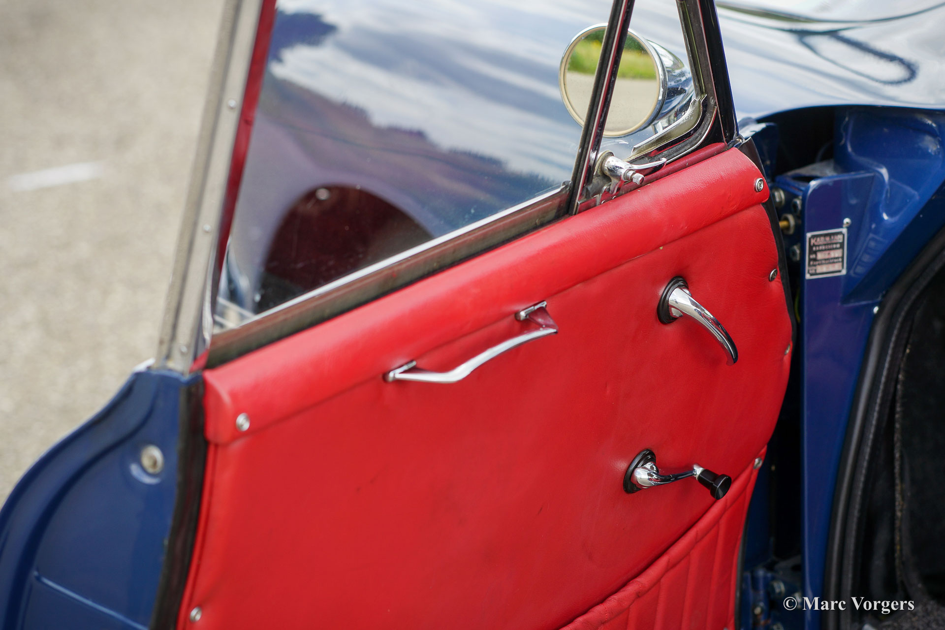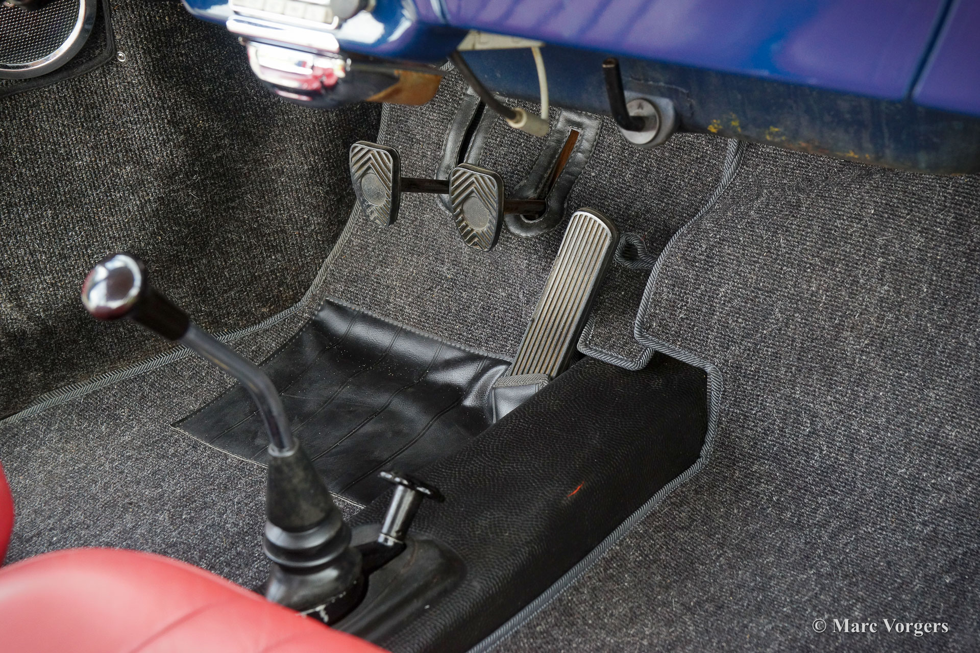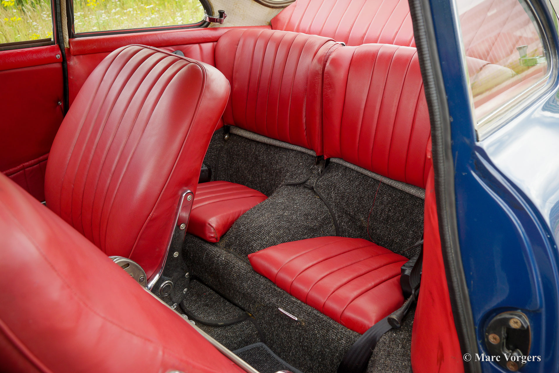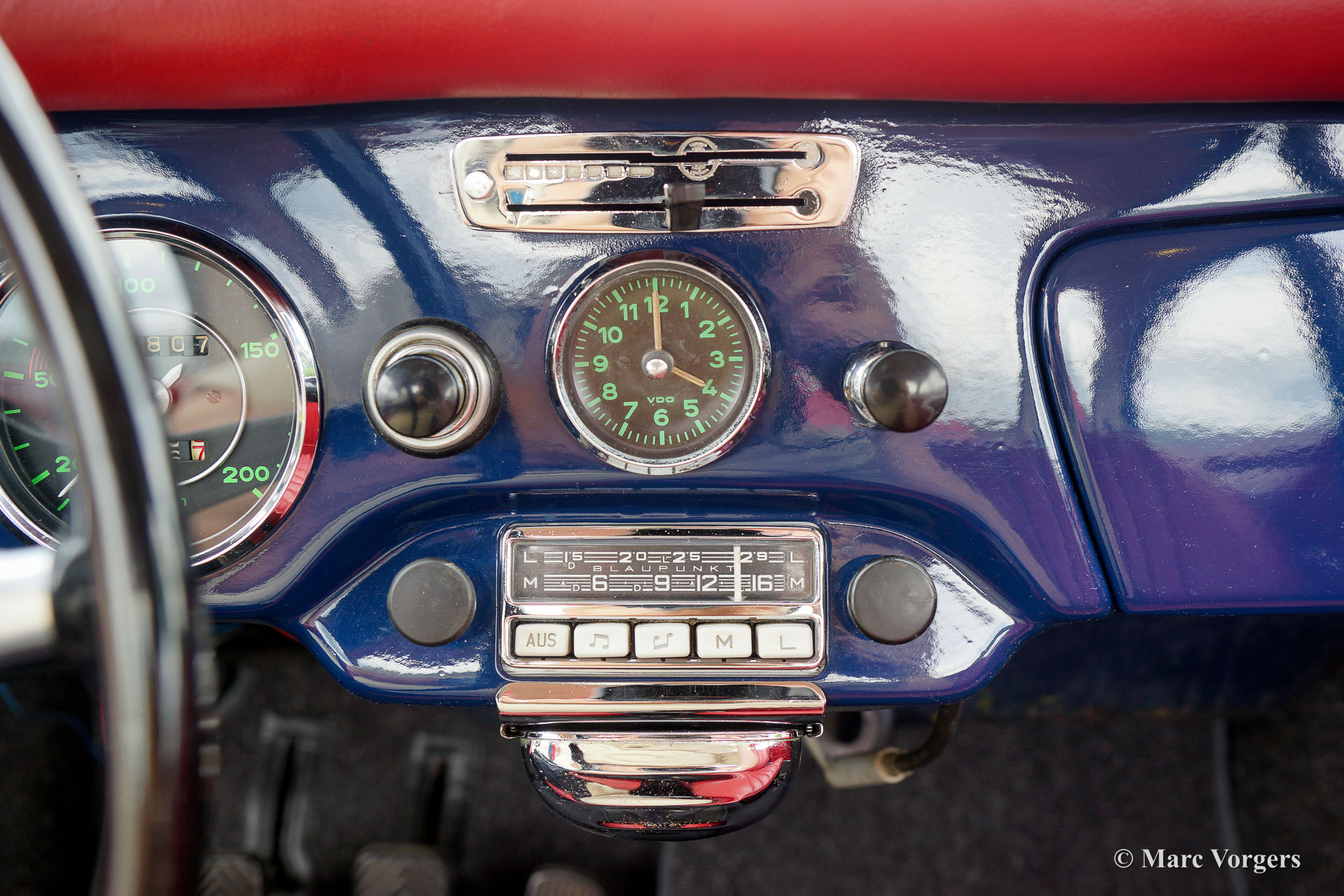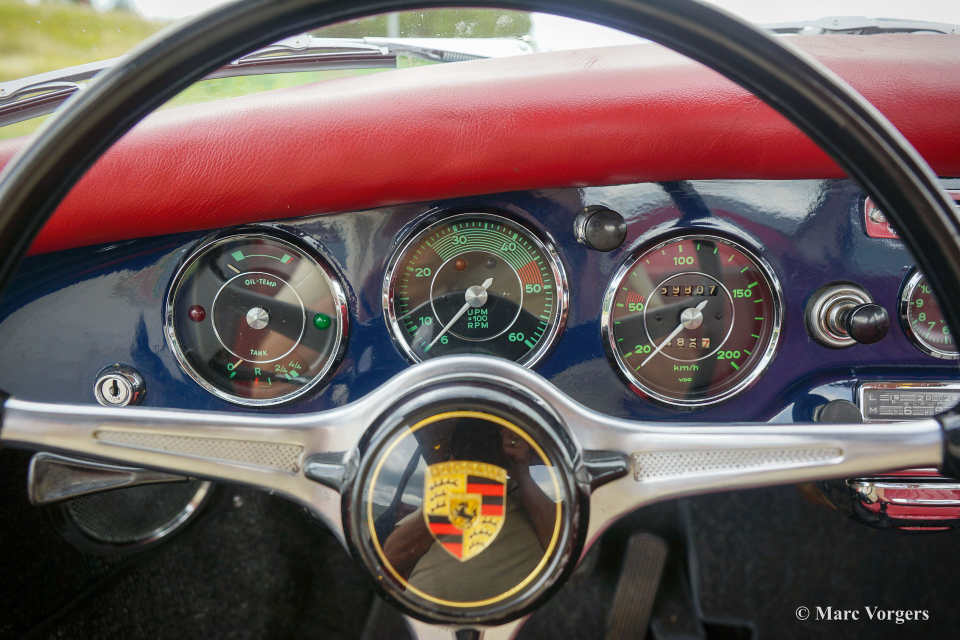 Porsche 356 1600 Super (B T6) coupé, jaar 1963. Kleur blauw gecombineerd met een roodlederen interieur en antracietkleurig tapijt. Deze schitterende Porsche 356 coupé presenteert zich met een prachtige kleurstelling en de auto toont alle originele details. Zittend op de bestuurdersstoel wordt u getrakteerd op de schoonheid van het originele stuur, het prachtige dashboard en de Blaupunkt Bremen autoradio. Onder de voorklep vindt u het reservewiel, de originele krik en een onderhoudsvriendelijke Optima accu. In de netjes gedetailleerde motorruimte is de luchtgekoelde viercilinder boxermotor in vol ornaat te bewonderen. Deze prachtige Porsche 356 1600 Super coupé verkeert in een zeer goede tot excellente conditie en de automobiel rijdt voortreffelijk. Bij 57.000 kilometer op de teller is de motor gereviseerd, nu staat er 59.000 km op de teller. Recent uitgevoerde service en updates: nieuwe versnellingsbaklagers gemonteerd, nieuwe benzinetank en E10 bestendige slangen gemonteerd, verbeterde geluidsisolatie gemonteerd, werking kachelbediening verbeterd, nieuwe Weber carburateurs gemonteerd, elektronische ontsteking gemonteerd, remmen gereviseerd (hoofdcilinder en hulpcilinders aan de wielen), wiellagers vernieuwd, nieuwe uitlaat gemonteerd en Koni schokbrekers gemonteerd. De carburateurs en de ontsteking zijn afgesteld op een rollenbank. Deze prachtige Porsche 356 is volledig up-to-date en klaar om met volle teugen van te genieten door een trotse nieuwe eigenaar!