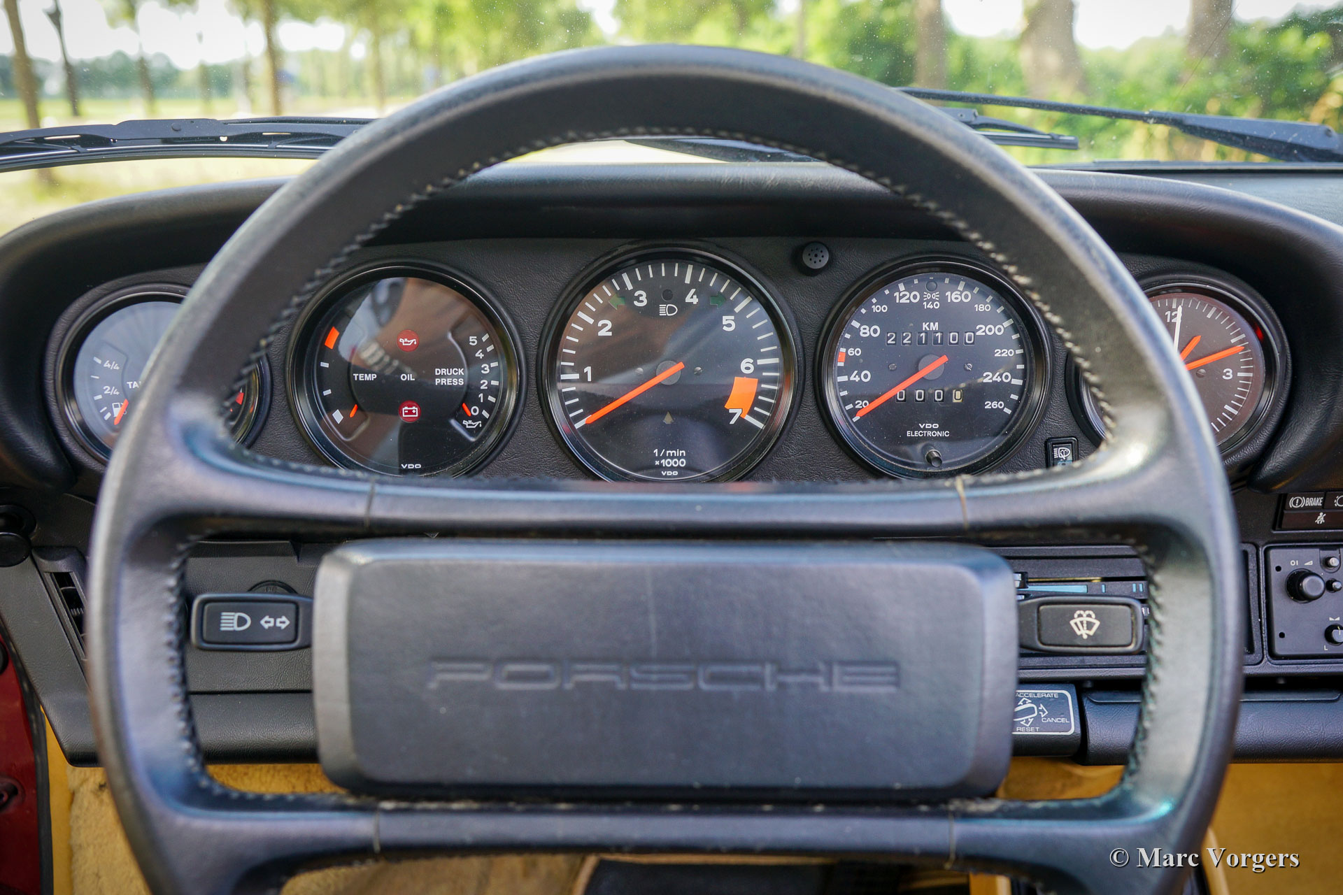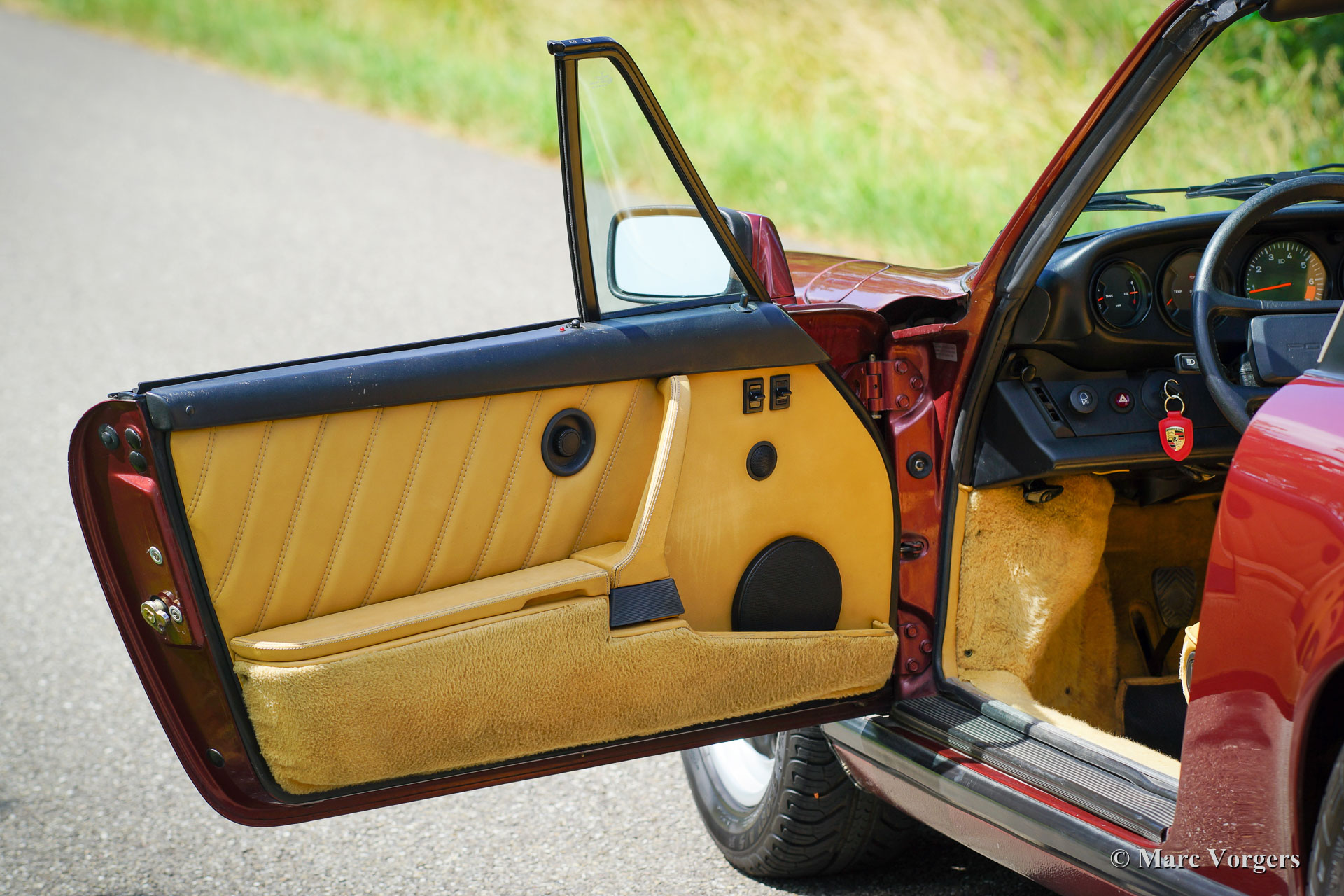 Porsche 911 Carrera 3.2 Targa, jaar 1985. Kleur ‘Granat Rot’ metallic gecombineerd met een beige leren interieur en beige tapijt. Zwart Targa dak met uitneembaar paneel. Deze fantastische Porsche 911 Carrera 3.2 Targa werd nieuw verkocht in San Francisco in de VS. De auto werd in Nederland geïmporteerd toen deze 123.419 mijl vanaf nieuw had gereden (Carfax-document is aanwezig om dit te bevestigen). Op een van mijlen naar kilometers berekende 214.000 kilometer kreeg de auto een Europese km/ u kilometerteller. Nu heeft de auto in totaal 221.100 kilometer gereden. Deze Porsche 911 bevindt zich in een zeer goede en volledig originele staat. De auto is altijd onderhouden door een merkspecialist, het onderhoudsboekje is ingevuld en correct gestempeld. De volledige servicegeschiedenis is bekend en gedocumenteerd met facturen, ook is er een Porsche ‘Geburtskunde’ aanwezig. Deze prachtige 911 is uitgerust met 16-inch Fuchs lichtmetalen velgen met Michelin-banden, getint glas, een af-fabriek gemonteerde Blaupunkt Monterey-radio, centrale vergrendeling en sport-/ comfortstoelen. Het originele reservewiel en de originele gereedschap-set zijn aanwezig. De Targa-versie van de Porsche 911 is een begeerd model met een fantastische open rijbeleving en een echt coupé gevoel wanneer het dakpaneel gemonteerd is. De zon op je hoofd en het machtige geluid van de robuuste Porsche 3,2-liter boxermotor die in je oren… The Good Life!
