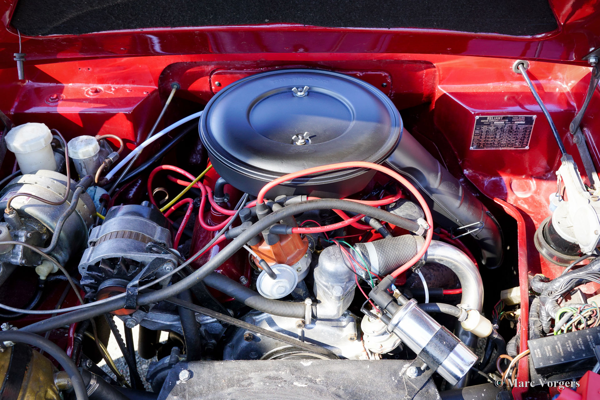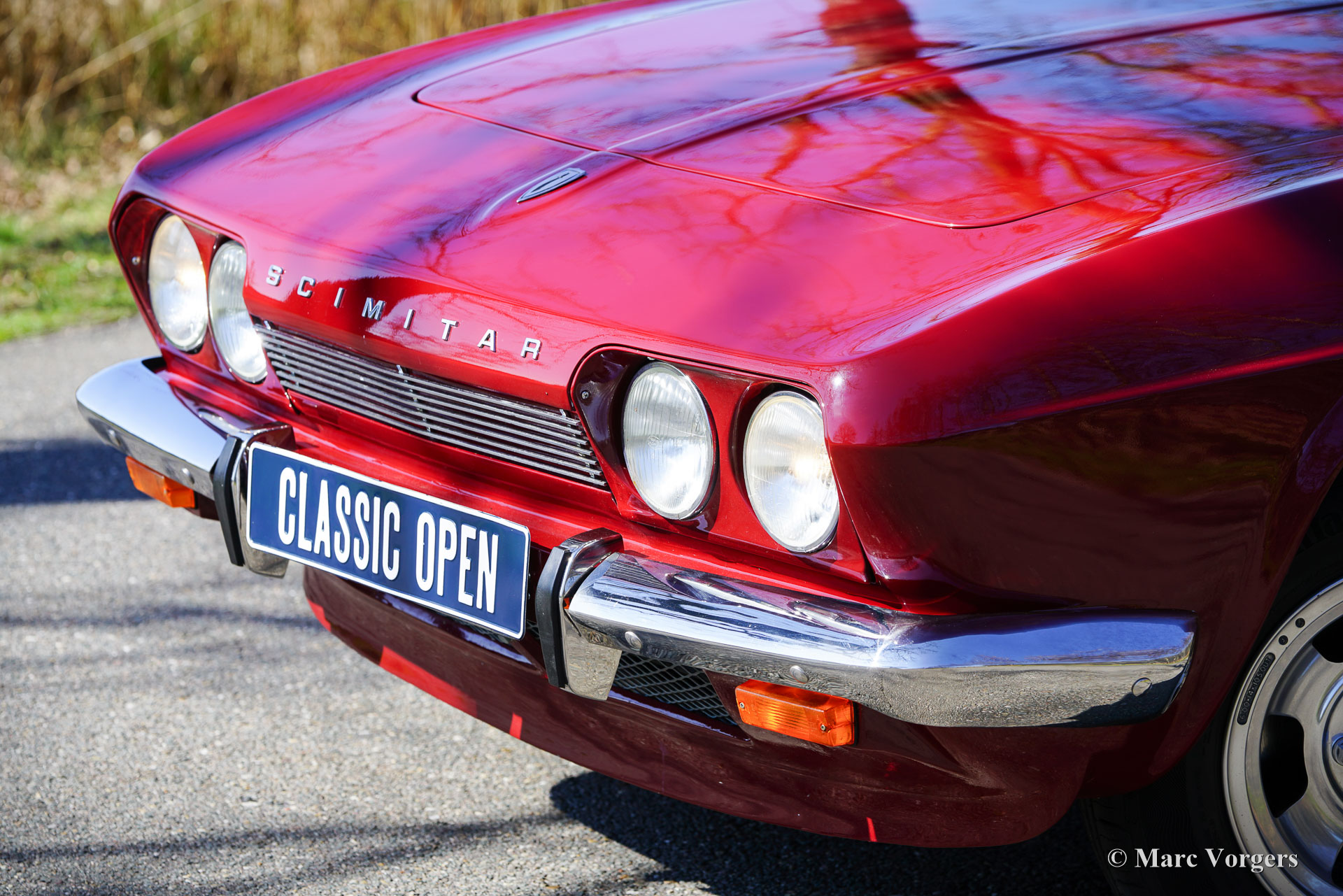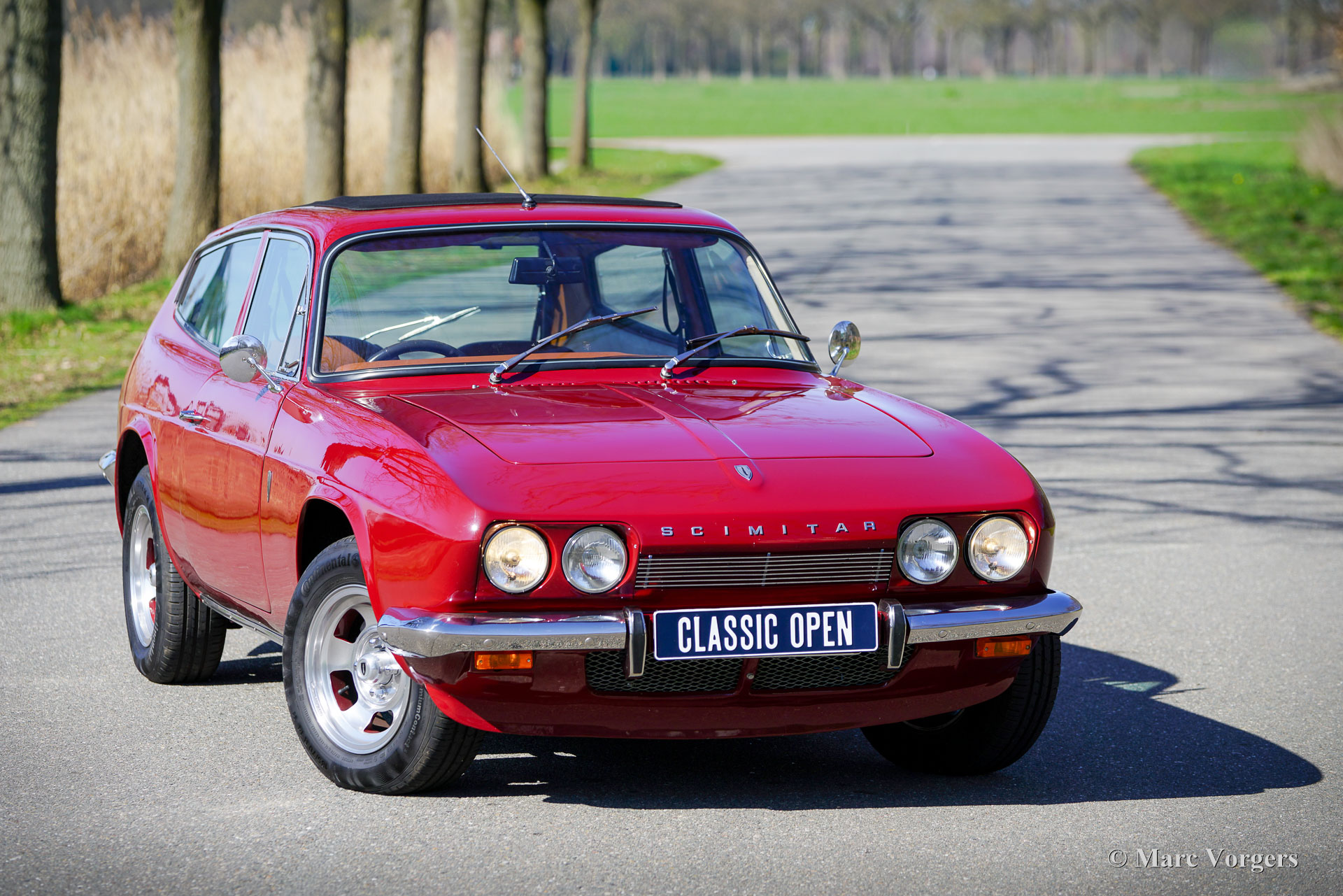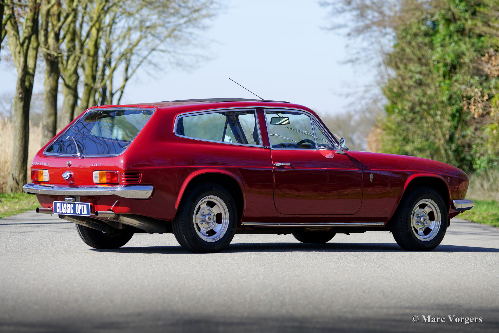 Reliant Scimitar GTE SE5A, jaar 1973. Dit prachtige exemplaar is uitgevoerd in donkerrood, gecombineerd met een cognacbruin kunstlederen interieur. De auto werd door een liefhebber uit het Verenigd Koninkrijk geïmporteerd en onderging vervolgens tussen 2022 en 2024 een uitgebreide restauratie. De restauratie is uitvoerig gedocumenteerd. De carrosserie van glasvezelversterkt kunststof werd opnieuw gespoten en een groot deel van het interieur werd vernieuwd, inclusief het vouw/ schuifdak. De krachtige Ford Essex 3-liter V6-motor, die zich al in goede staat bevond, werd voorzien van een nieuwe carburateur en een elektronische ontsteking. De vierversnellingsbak is uitgerust met de gewilde overdrive-optie. Tijdens de restauratie werd de auto voorzien van nieuwe roestvrijstalen bumpers, een roestvrijstalen uitlaatsysteem, 14-inch gepolijste Wolfrace lichtmetalen velgen met Continental 185/70 R14 H banden en een Caliber retro radio. De Reliant Scimitar GTE was een baanbrekend ontwerp toen hij in 1968 werd geïntroduceerd. Het was een sportieve tweedeurs stationwagen die in feite het ‘shooting brake’-segment creëerde. Het model werd geprezen om zijn fraaie styling, karakter, praktische bruikbaarheid en innovatieve constructie, waarbij een stalen kokerprofielchassis werd gecombineerd met een daarop gemonteerde GRP-carrosserie. De mechanische componenten (motor, versnellingsbak, achteras en meer) waren afkomstig van de Ford Zephyr/Zodiac en Capri-modellen. Dit is een buitengewone kans om een iconische Reliant Scimitar GTE SE5A in gerestaureerde en zeer goede staat te kopen, aangeboden voor een prijs die ver onder de restauratiekosten ligt!