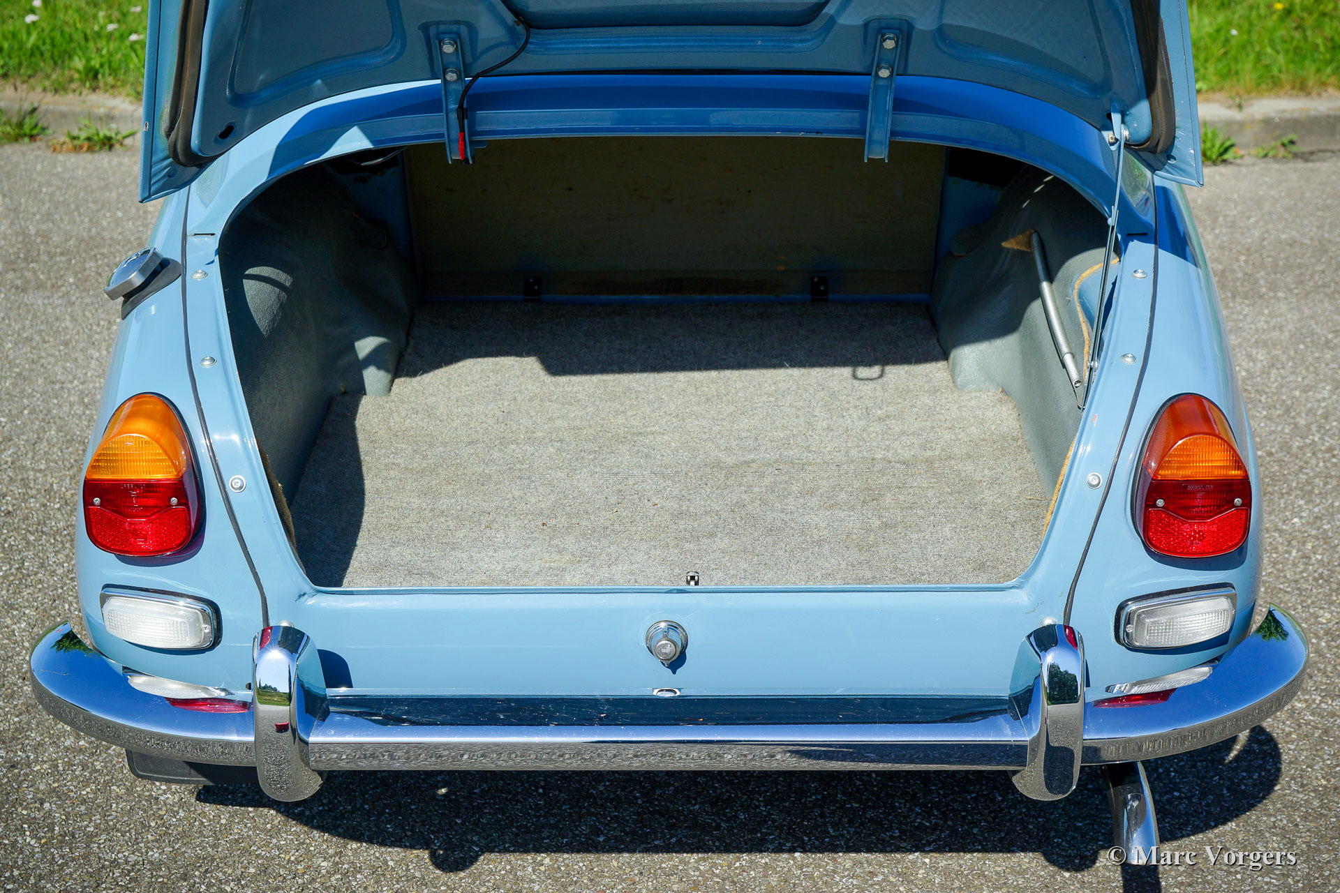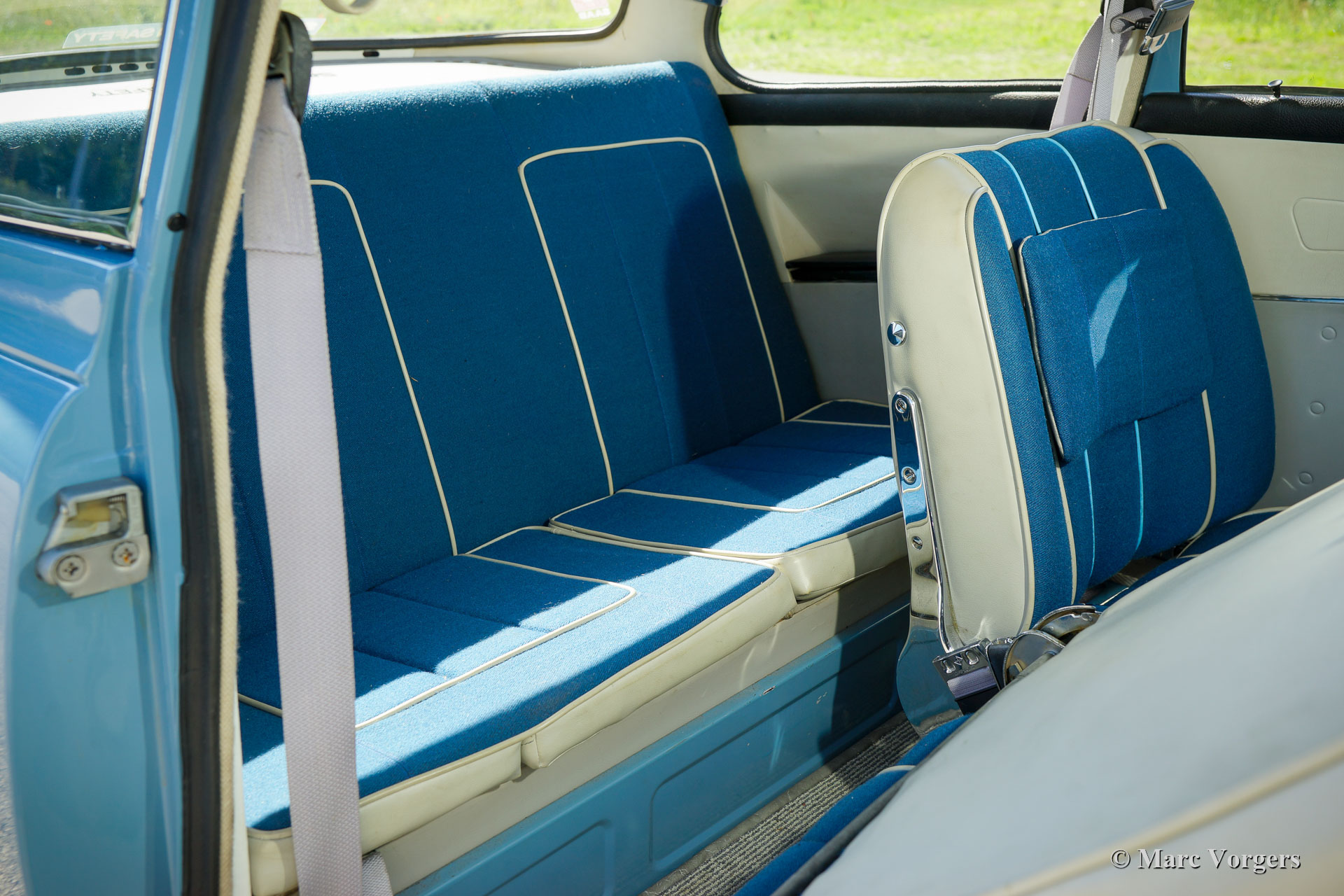 Saab 96 Monte Carlo 850, jaar 1967. Kleur lichtblauw gecombineerd met een blauw/ grijs (stof/ kunstleer) interieur. De Saab 96 Monte Carlo 850 is gebouwd ter herdenking van de Monte Carlo rally overwinningen van rallyrijder Erik Carlsson in 1962 en 1963. Het Monte Carlo-model onderscheidt zich met speciale opties en details: de 850 cc tweetaktmotor is uitgerust met drie carburateurs, een automatisch tweetakt-oliesmeersysteem en de wielen zijn met vijf bouten op de naven gemonteerd in plaats van vier op andere Saab 96-modellen. Optisch onderscheidt de Monte Carlo zich door de ‘Monte Carlo’ badges, speciale stoelen en achterbank, het sportieve dashboard met een hout omrand stuur, speciale deurbekleding en dubbele chromen strips aan de zijkanten. Dit prachtige exemplaar is in het verleden uitvoerig gerestaureerd. De carrosserie is verzinkt. Een fotoreportage en facturen van de restauratie zijn aanwezig. Deze Saab 96 Monte Carlo 850 verkeert in excellente conditie, met lichte gebruikssporen, en de auto rijdt perfect. De tweetaktmotor levert 55 pk en de vierversnellingsbak met stuurkolomschakeling werkt uitstekend. Deze Saab is voorzien van schijfremmen op de voorwielen en een wisselstroomdynamo. De auto wordt compleet geleverd met de originele gebruikershandleidingen die alle speciale originele details tonen. Dit is een zeer wenselijk exemplaar voor de Saab-liefhebber en verzamelaar.