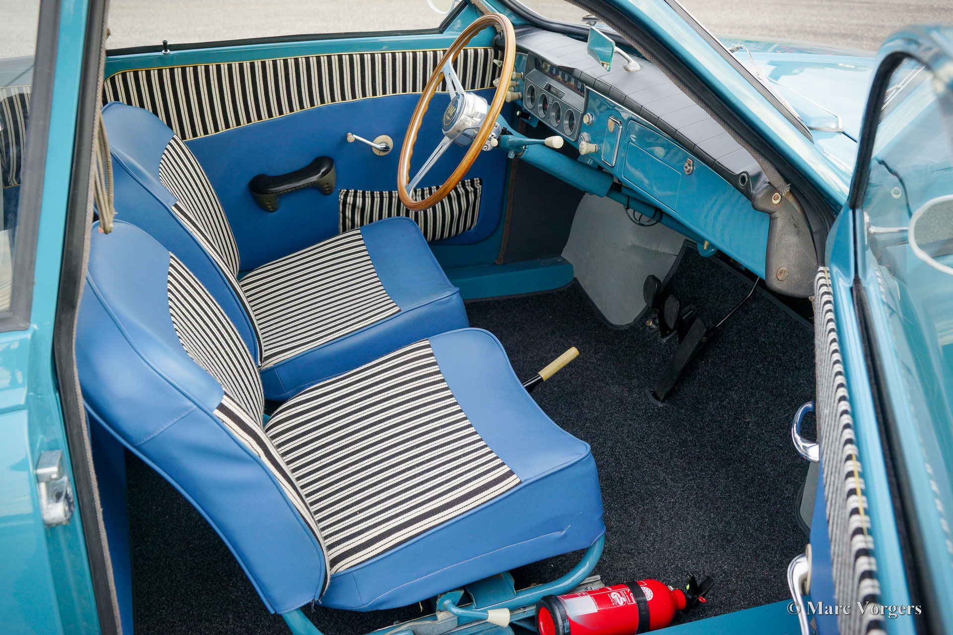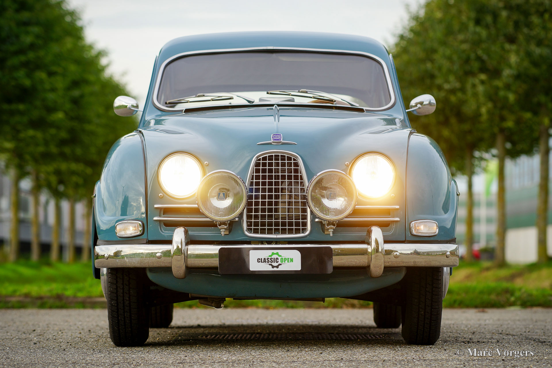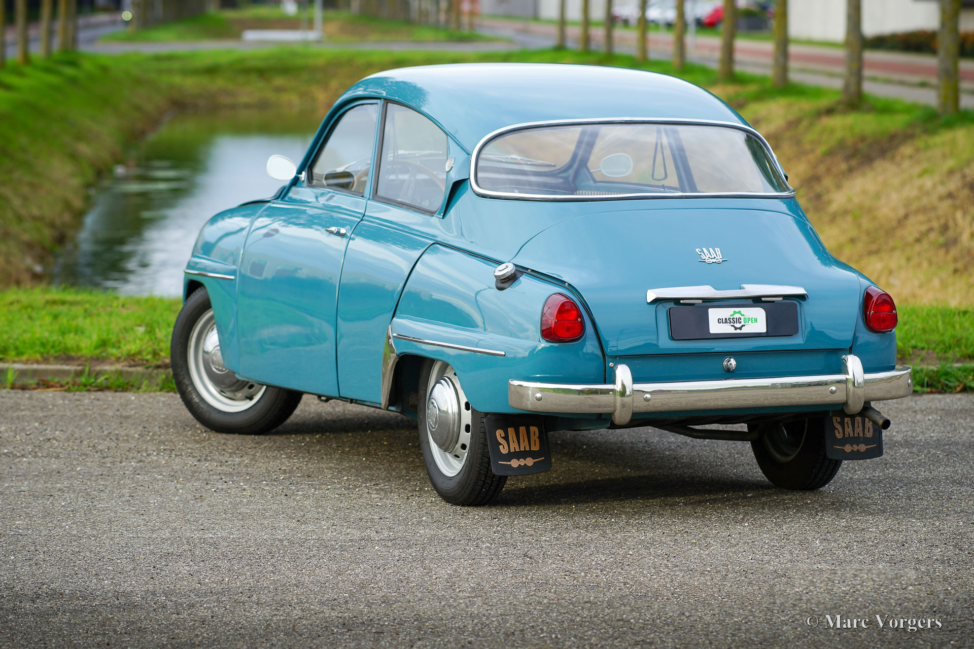 Saab 96 ‘tweetakt’, jaar 1960. Kleur blauw gecombineerd met een blauw/wit vinyl/stoffen interieur afgewerkt met grijs tapijt. Deze fantastische Saab 96 ‘tweetakt’ werd nieuw verkocht in Zweden. De automobiel is uitvoerig gerestaureerd en gereviseerd, het uitstekende interieur is nog origineel! Deze Saab verkeert in een excellente tot sublieme conditie en de auto rijdt perfect. Een fotoreportage van de restauratie is aanwezig. De auto wordt aangedreven door de legendarische Saab 850 cc driecilinder tweetaktmotor die het typische en prachtige ‘ring-ding-ding’ uitlaatgeluid produceert. De versnellingsbak is een handgeschakelde drieversnellingsbak met stuurkolomschakeling. Deze Saab is een van de zeer vroege Saab 96 auto's gebouwd in 1959 als opvolger van de Saab 93. De Saab 96 is een Saab icoon en een rally icoon. Deze Saab 96 ‘tweetakt’ is een prachtige vondst voor de Saab liefhebber en/ of verzamelaar.