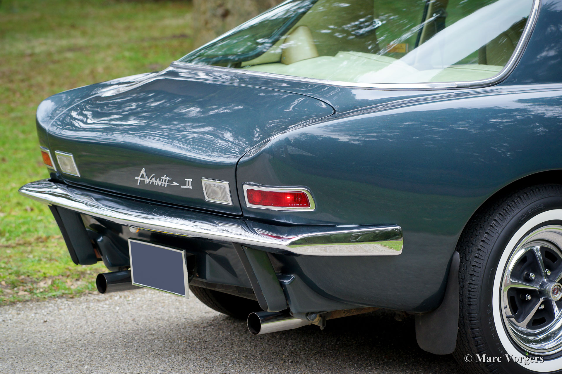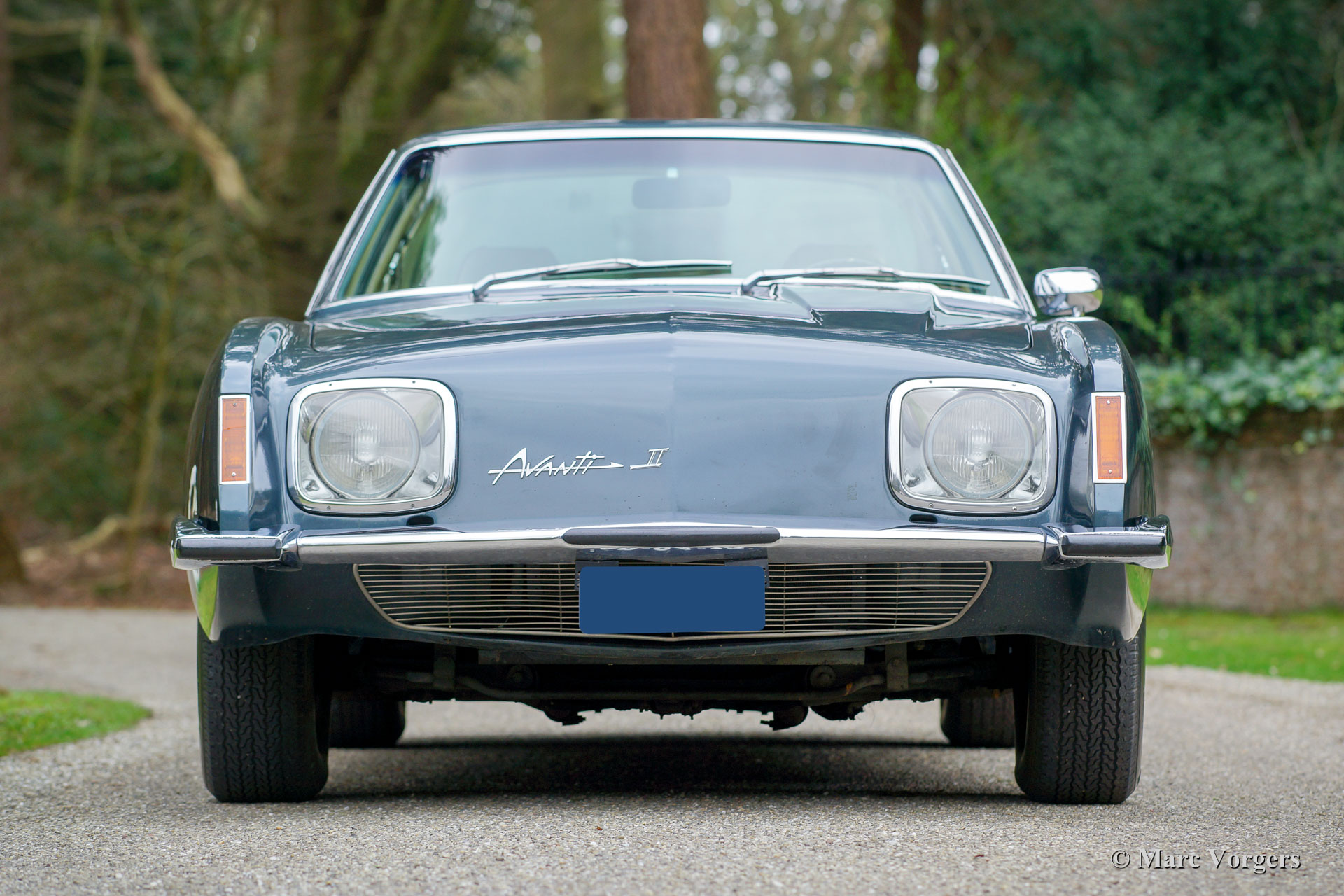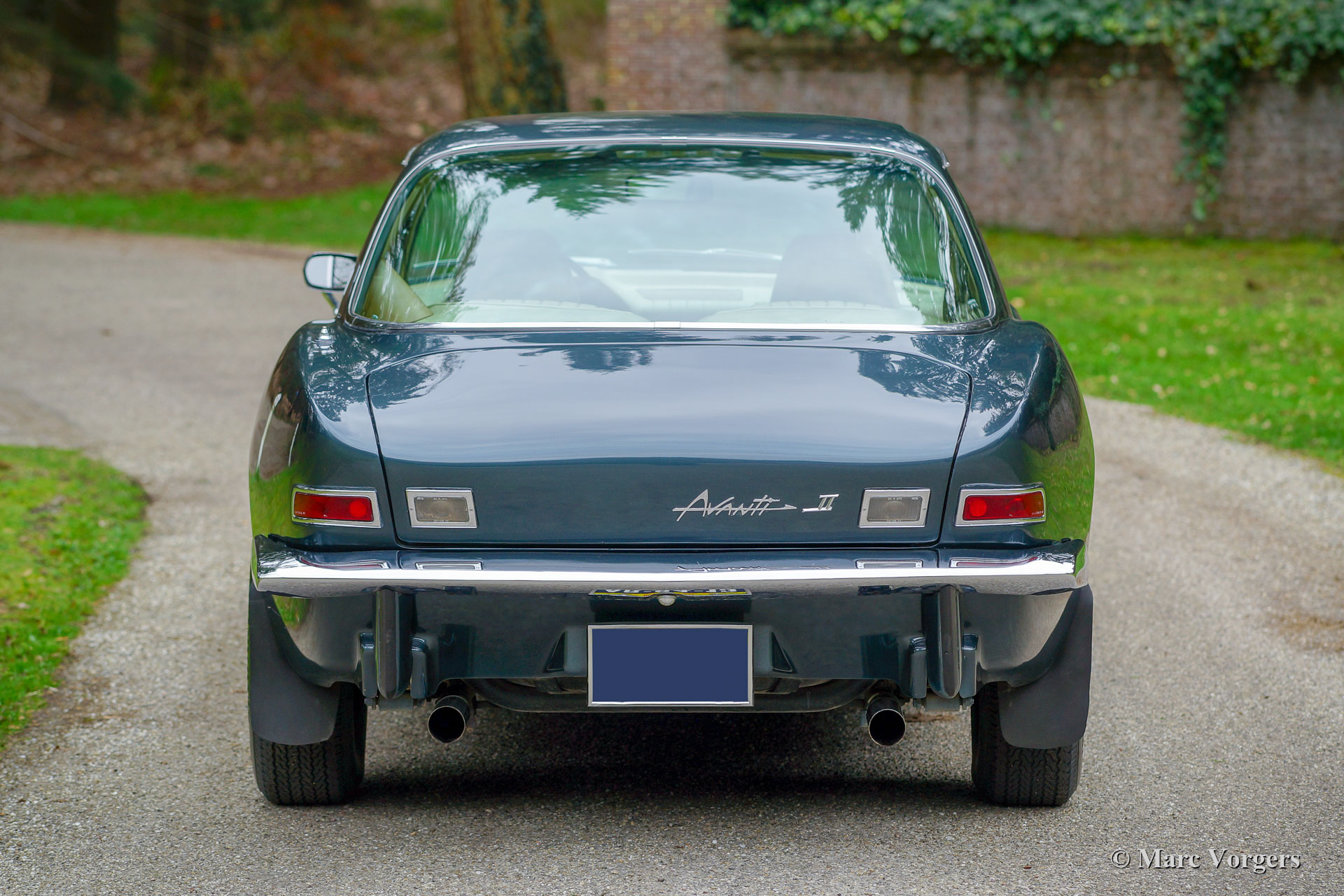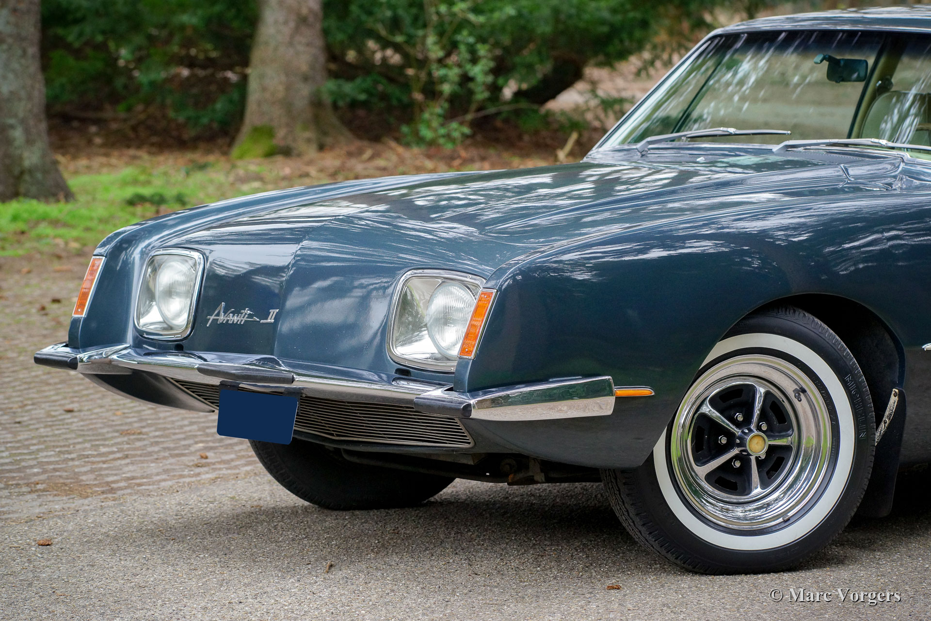 Studebaker Avanti II, jaar 1971. Kleur blauw metallic gecombineerd met een beige leren interieur en beige tapijt. Deze prachtige Avanti II werd nieuw verkocht in de VS, in 2014 werd de auto geïmporteerd in Nederland. Vanaf nieuw heeft de auto slechts 51.000 Miles gereden; deze Avanti II verkeert in een super originele staat! De Studebaker Avanti is ontworpen door het ontwerpteam van de wereldberoemde industriële ontwerper Raymond Loewy. De auto werd in 1962 aan het publiek voorgesteld. De toen ultramoderne carrosserie werd vervaardigd van glasvezelversterkt polyester. De Studebaker Avanti werd op de markt gebracht als 'America's only only-passenger high-performance personal car.' De Avanti werd gebouwd tot december 1963 toen de fabriek in Studebaker South Bend (Indiana, VS) werd gesloten. De Avanti-naam, de gereedschappen/ mallen en de South Bend-fabriek werden verkocht aan twee lokale Studebaker-dealers, Nate Altman en Leo Newman, die de Avanti, nu Avanti II genoemd, voortzetten. De gepresenteerde Avanti II heeft een 5.4 liter, 273 pk sterke Chevrolet Corvette V8-motor die gekoppeld is aan een automatische versnellingsbak die de achterwielen aandrijft. Deze prachtige en zelden geziene automobiel toont alle originele details. Dit is een super originele Avanti II in prachtige conditie!