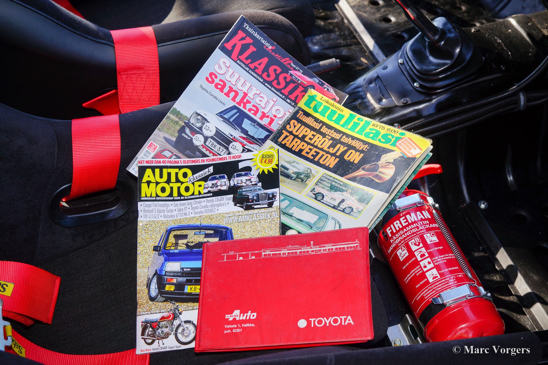 Toyota Corolla Coupe rally auto, jaar 1973. Kleur wit gecombineerd met een zwart rally interieur. Deze fantastische Toyota Corolla Coupé is een replica van de originele Hannu Mikkola - Atso Aho Team Toyota Europe (TTE) rallyauto waarin ze in 1975 de 1000 Meren Rally in Finland wonnen! De auto is in het verleden gerestaureerd en opgebouwd door een Finse specialist als eerbetoon aan Hannu Mikkola (helaas is Mikkola overleden op 26 februari 2021, 78 jaar oud). De auto was een jaar te zien in het Finse rallymuseum en je vindt de handtekening van Hannu Mikkola op het linker voorspatbord. De auto is in Nederland geregistreerd en wordt compleet geleverd met historie en drie autobladen. Het tijdschrift uit 1975 gaat over de originele Mikkola-auto en de andere twee autobladen, een Finse en een Nederlandse, bevatten artikelen over de gepresenteerde Toyota Corolla rally auto. Ook aanwezig is de zeldzame originele gebruikershandleiding in het originele Finse mapje. Deze indrukwekkende Toyota Corolla rallyauto is een getrouwe reproductie van de originele rallyauto. Het exterieur toont de correcte details en alle logostickers zijn perfect nagemaakt. De auto verkeert in een excellente conditie en de auto rijdt en stuurt uitstekend! De originele TTE-rallyauto was uitgerust met een 195 pk sterke Toyota 151E-16 Twin Cam ‘Levin'-motor, de gepresenteerde Corolla wordt aangedreven door een vergelijkbare 2T-G Toyota Twin Cam-motor uit dezelfde periode met twee dubbele Dell'Orto-carburateurs. Deze magnifieke Toyota Corolla Coupé is een geweldige propositie voor de Toyota verzamelaar of de persoon die met een ongelooflijk bijzondere en zelden geziene auto wil meedoen aan historische rallyevenementen!