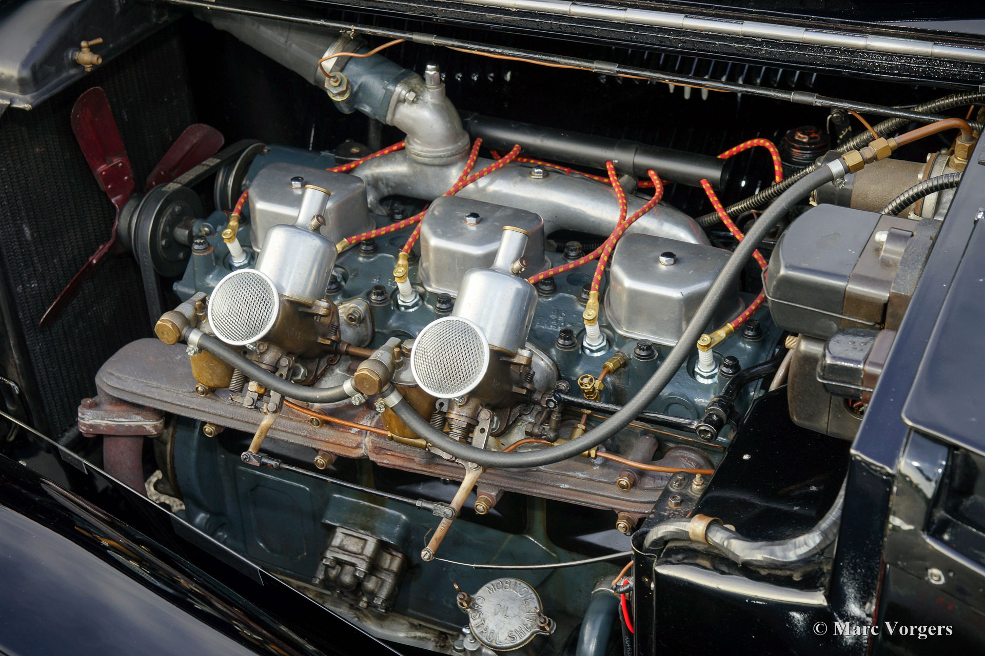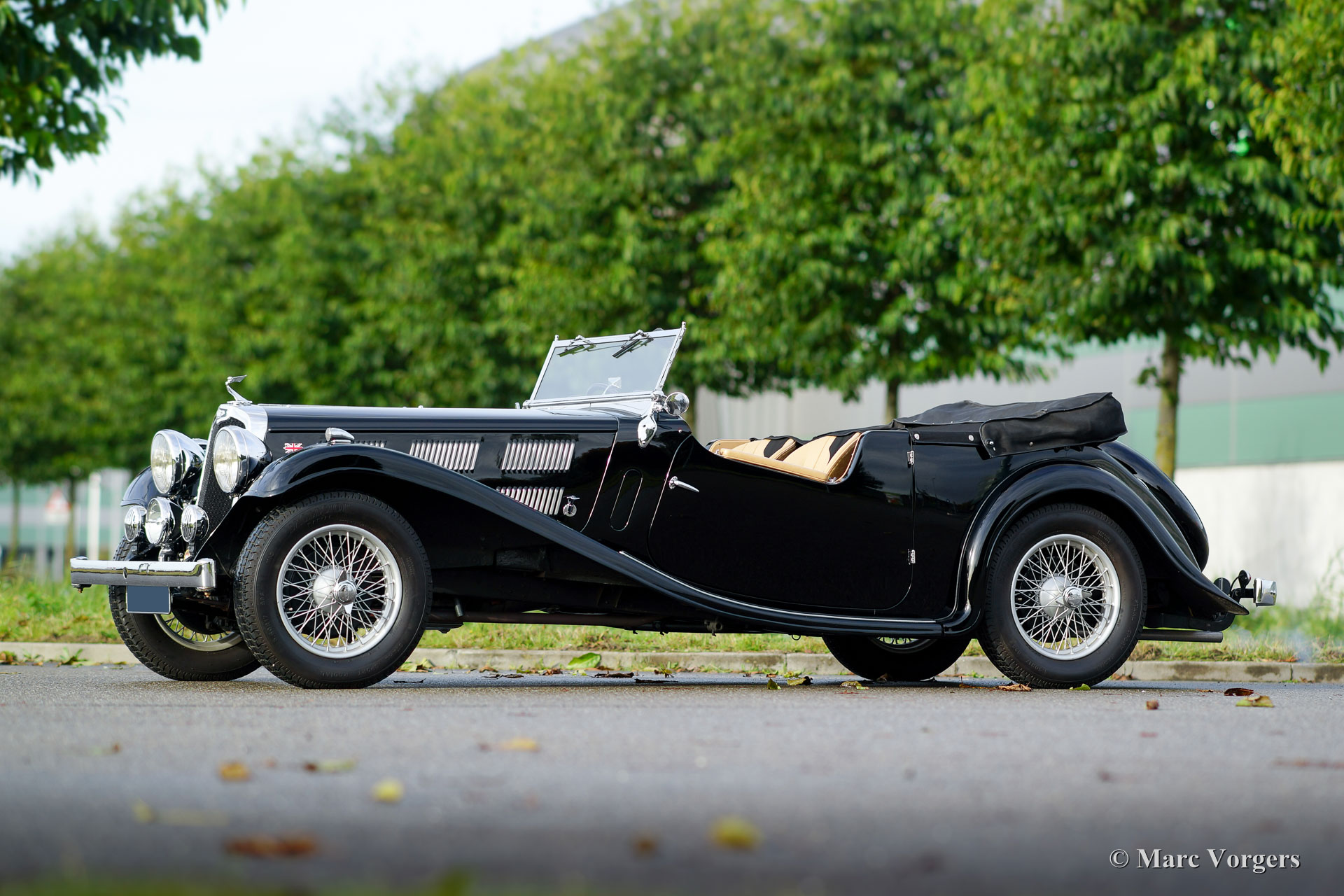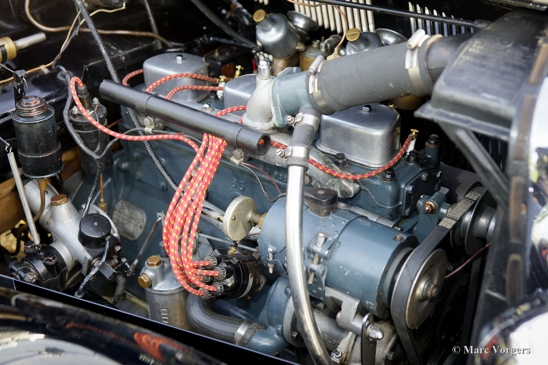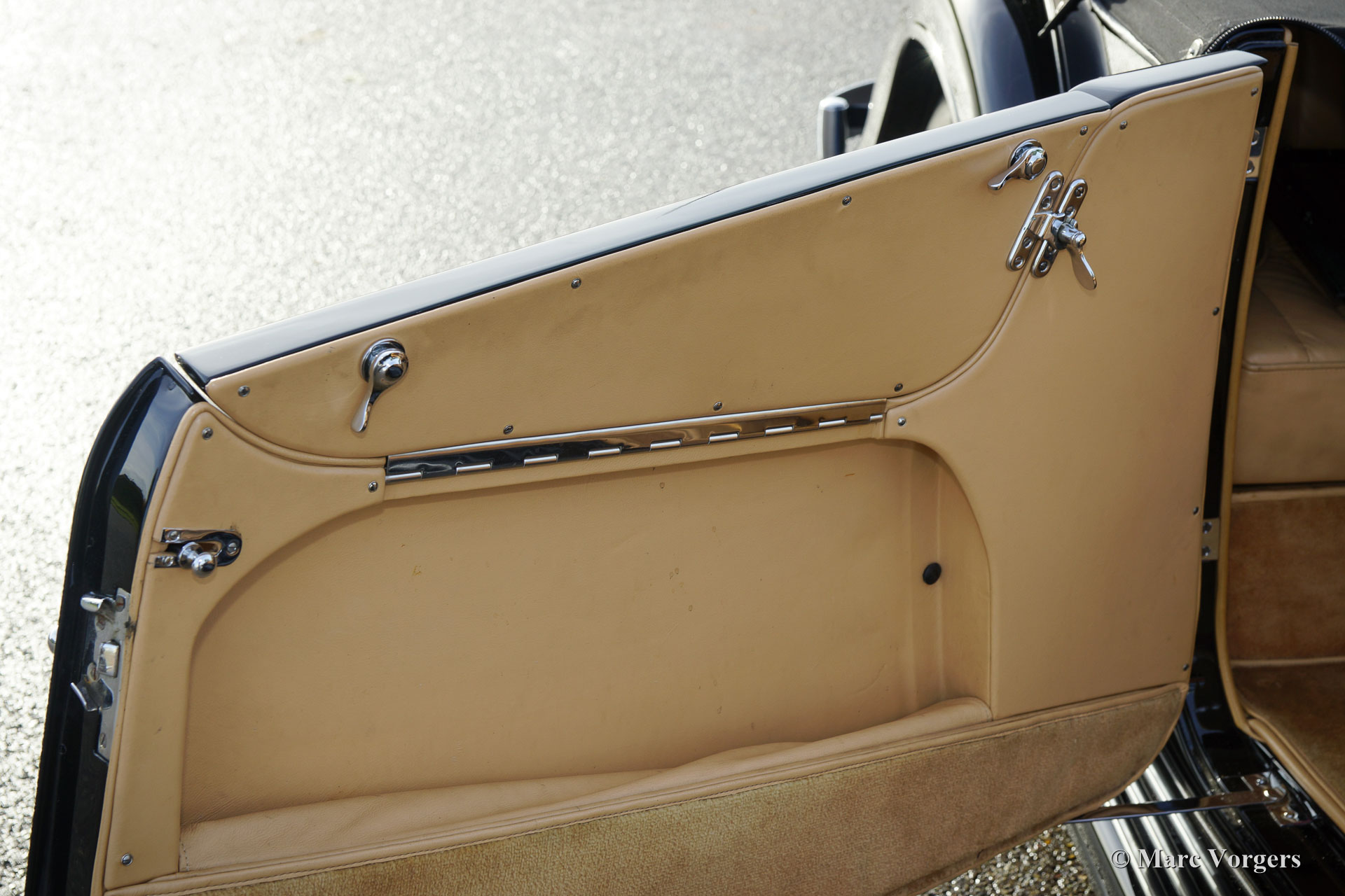 Triumph Gloria SIX Vitesse tourer, jaar 1935. Kleur zwart met een beige lederen interieur en beige tapijt. Zwarte canvas kap en ‘side screens’. Deze zeldzame en zeer fraaie Triumph Gloria SIX Vitesse tourer uit 1935 werd in de periode 1990 - 1994 uitvoerig en zeer fraai gerestaureerd door specialist Gloria coachworks in Engeland. Sinds het jaar 2013 is de Triumph in Nederland. Recent zijn de motor en de versnellingsbak gereviseerd en werd de carrosserie geheel nieuw gespoten. Deze prachtige Triumph Gloria SIX verkeert in sublieme staat! De historie is bekend vanaf 1948, er is echter ook een Engels belastingschijfje aanwezig uit het jaar 1935. Op dit moment zijn er bij de Pre-1940 Triumph Motor Club England nog vijf auto’s van dit type bekend (Gloria SIX tourer met de 2 liter Coventry Climax zescilinder motor). Deze Triumph is een indrukwekkende verschijning met vele fraaie details. De zescilinder motor klinkt geweldig!