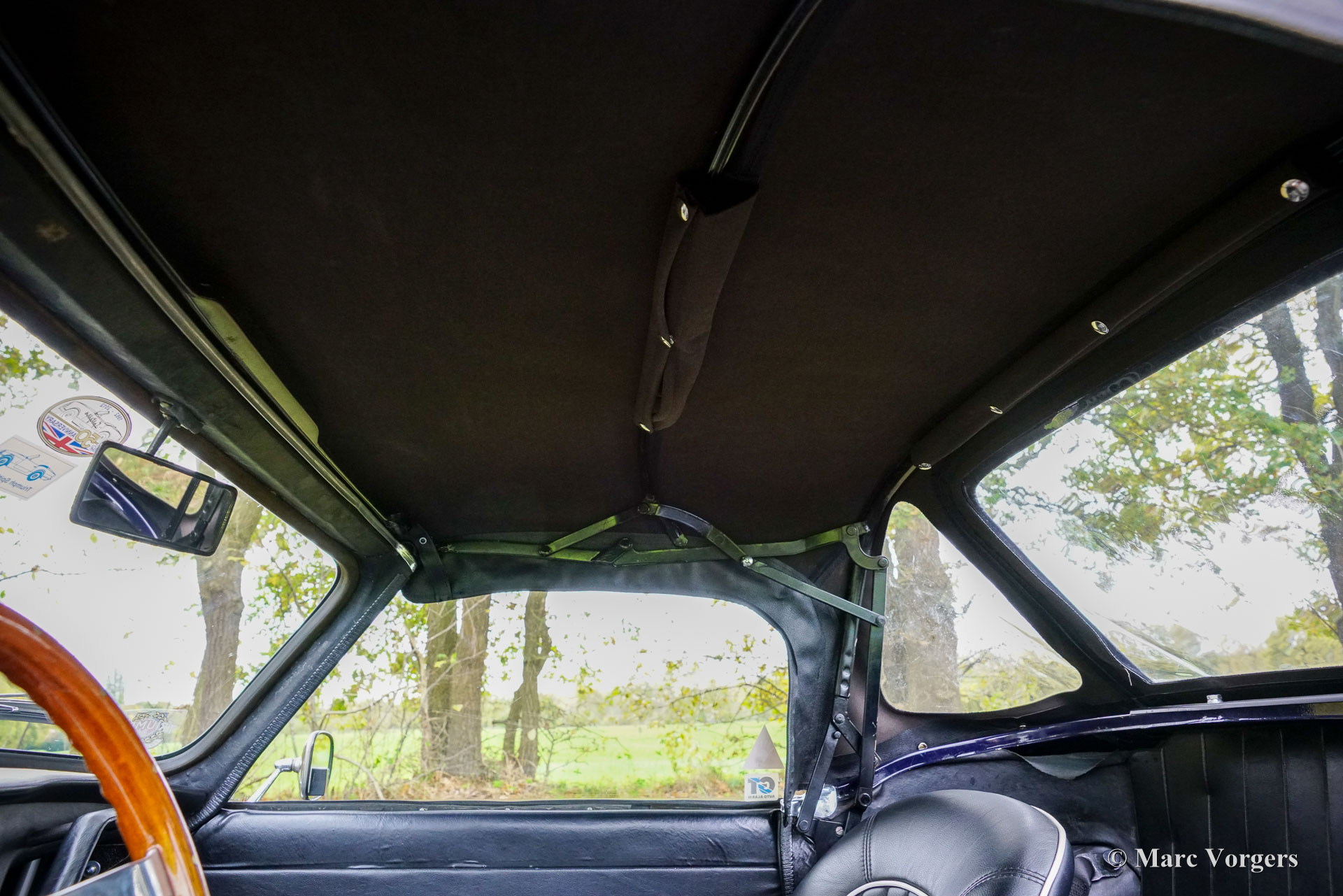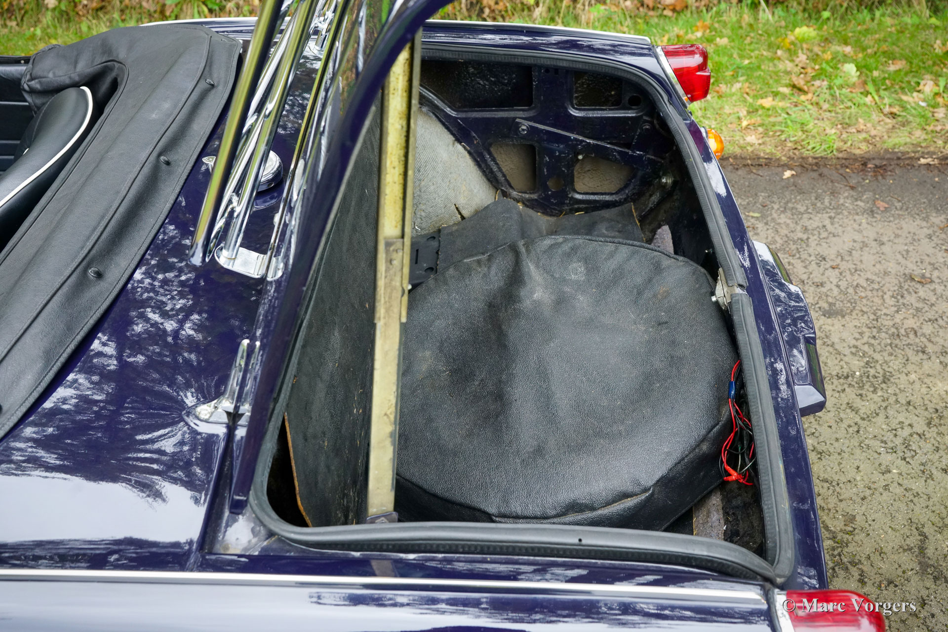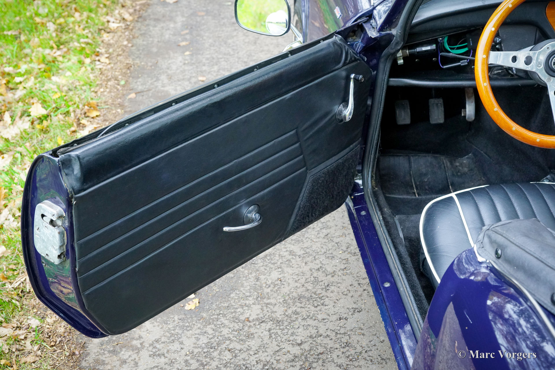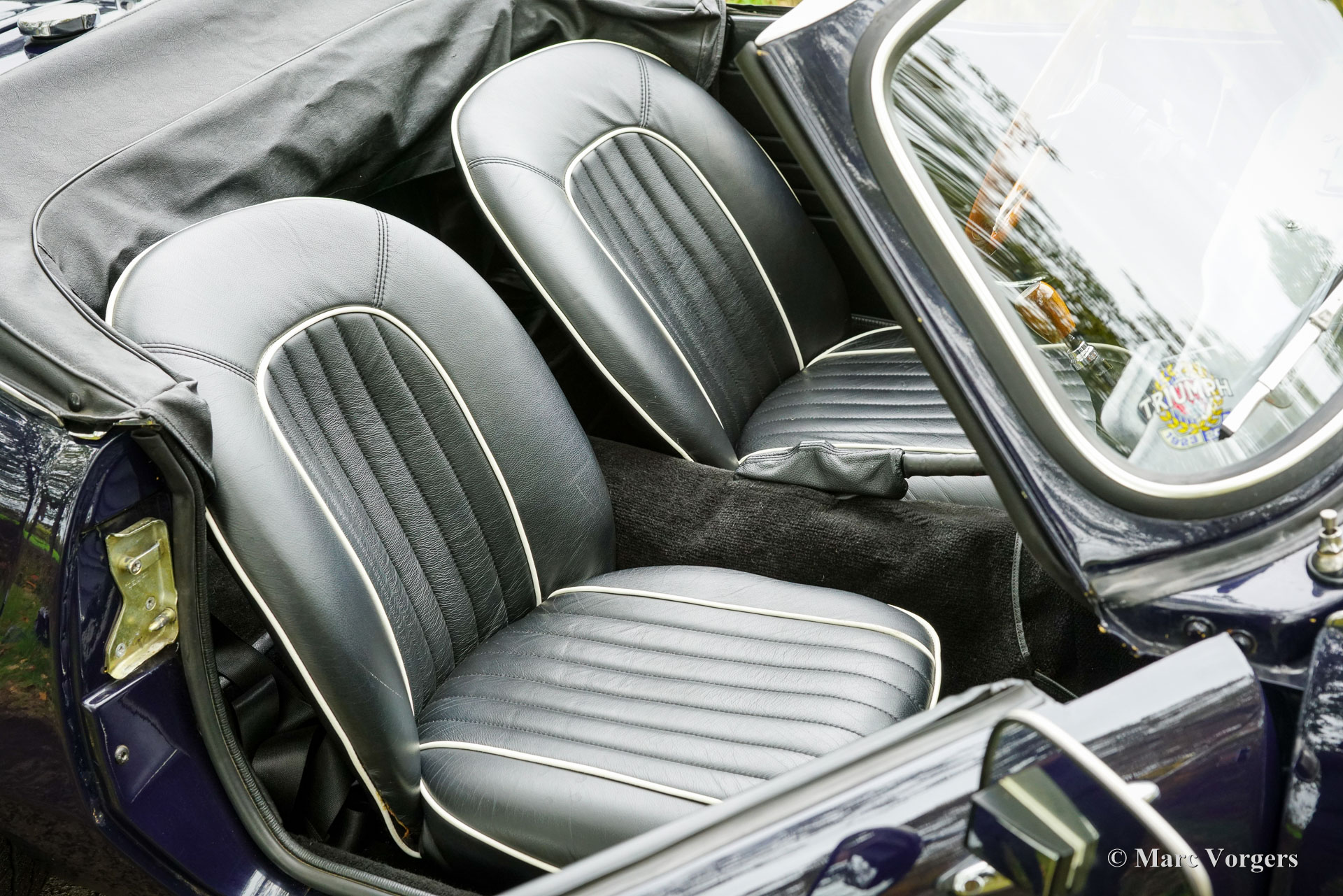 Triumph Spitfire MK 3, jaar 1971. Chassisnummer: 1FD83020L. Carrosseriekleur donkerblauw (Royal Blue) gecombineerd met een zwart kunstlederen interieur afgewerkt met zwart tapijt. Zwarte vinyl soft-top, kapafdekking en tonneaucover. Deze prachtige Triumph Spitfire werd nieuw verkocht in het Verenigd Koninkrijk en geregistreerd op 30 juni 1971. In 1984 werd de auto geïmporteerd naar Nederland. De huidige eigenaar heeft sinds 2023 genoten van deze schoonheid tijdens vele ritten in Nederland, Luxemburg en in de Square Mountain Rally. De Triumph Spitfire is een glorieus ontwerp van de Italiaanse meesterstylist Michelotti die verantwoordelijk was voor de levendige vormen van vele Triumph-klassiekers. Gebaseerd op een licht aangepast Triumph Herald-chassis en aandrijflijn is de Spitfire eenvoudig en goedkoop te onderhouden. Bij het openen van de grote motorkap worden de motor en de voorwielophanging volledig blootgelegd voor maximale bereikbaarheid. De 1296 cc viercilinder-in-lijn motor levert 68 pk en is gekoppeld aan een handgeschakelde vierversnellingsbak die de paardenkrachten naar de achterwielen stuurt. Met een gewicht van slechts 715 kilogram biedt de compacte Spitfire MK3 levendig sportieve prestaties en een geweldige open rijervaring. Dit prachtige exemplaar in Royal Blue verkeert in een goede tot zeer goede staat en de auto is onlangs uitgebreid onderhouden in onze werkplaats. De auto is uitgerust met overdrive, chromen spaakwielen, chromen ‘knock-on’ wielmoeren, een chromen bagagerek, een sportstuur met houten rand, rembekrachtiging, een opbergkluisje voor waardevolle spullen achterin, een krik, een houten wielmoersleutel en een 'moderne' JVC KD-452 stereo radio-cd-speler met Aux-ingang en een antenne op het rechter voorspatbord. De auto wordt geleverd met extra reserveonderdelen, extra wielen en banden. Facturen van recent onderhoud zijn beschikbaar. Deze Triumph Spitfire is een klassieker met een uitstekende prijs-kwaliteitverhouding. Deze Spitfire MK 3 zal de nieuwe eigenaar veel rijplezier, en indien gewenst, veel nieuwe vrienden bezorgen bij de zeer actieve Triumph Spitfire club!