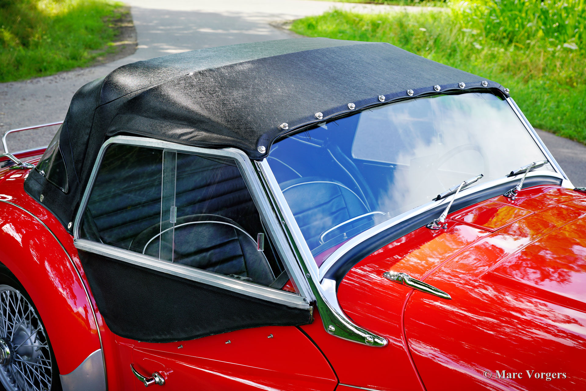De TR 3 /a/b zijn pure tweezits roadsters, klassiekers die je het britse sportwagengevoel uit de vijftiger jaren sterk laten beleven. Eigenlijk moeten dit soort auto's altijd open gereden worden en is het gewoon zaak je kleding aan te passen. Wordt het toch te bar, dan kan de eenvoudige soft-top worden opgeklapt. Zijruiten zijn van het insteek-type en kunnen separaat op de deuren worden aangebracht.