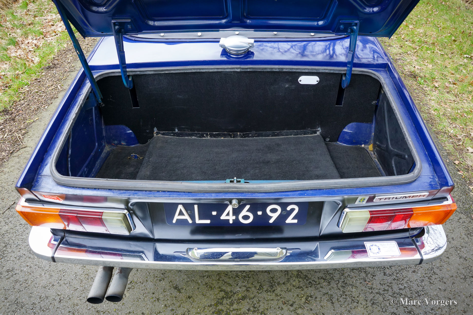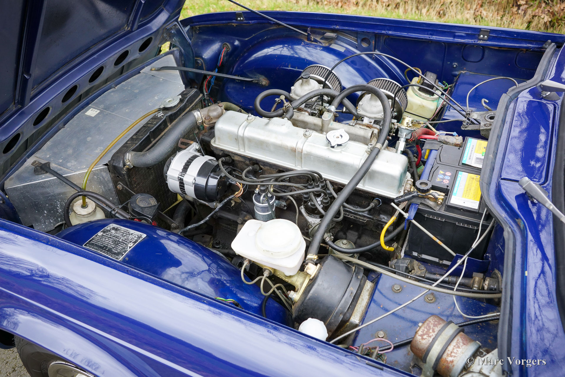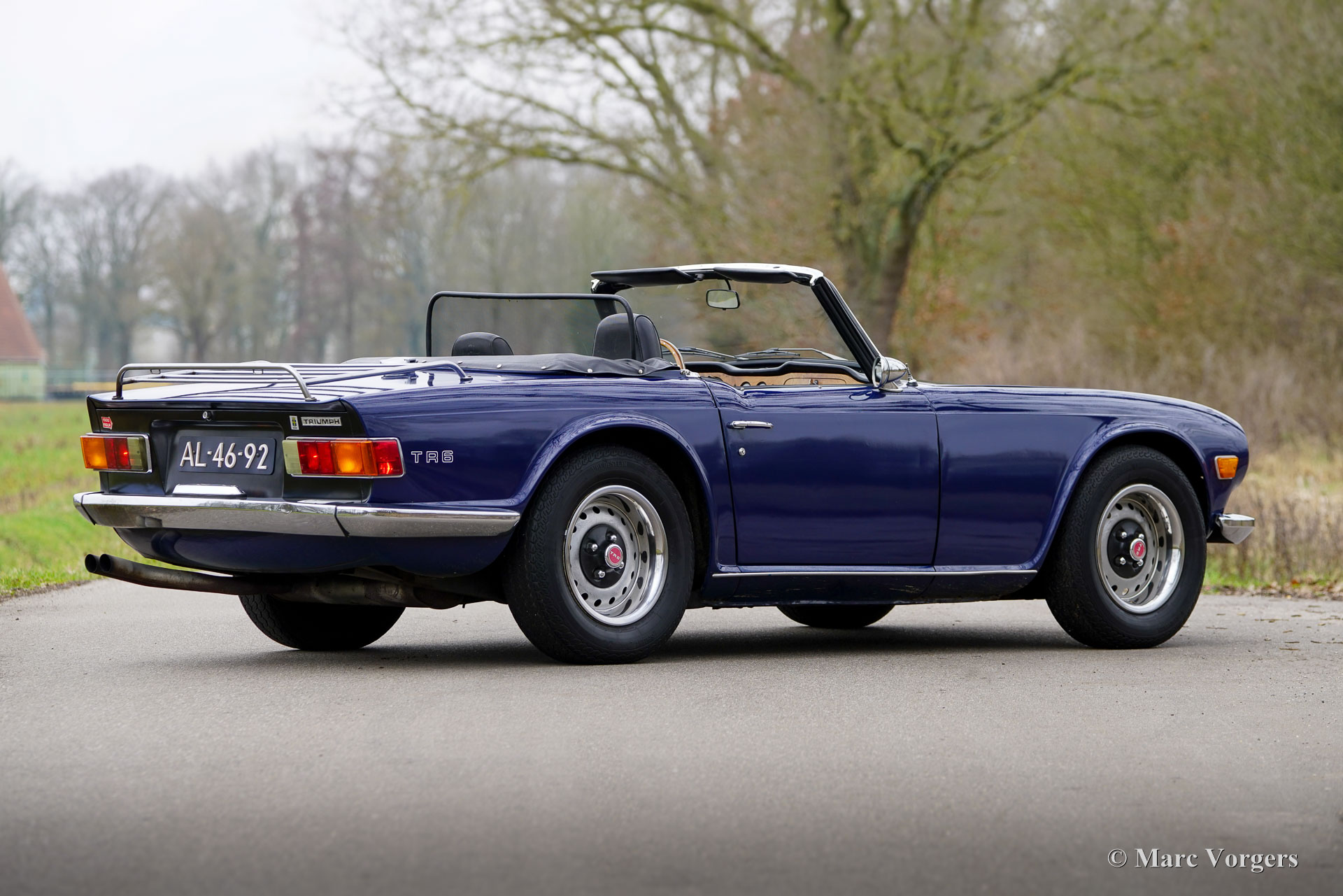 Triumph TR6, bouwjaar 1971 (eerste registratie 30 juni 1971). Chassisnummer 65860 CC. Uitgevoerd in blauw met een zwart kunstlederen interieur en zwarte vloerbedekking, presenteert deze Triumph TR6 uit 1971 zich als een goed onderhouden en eerlijke rijdersauto. Hij is voorzien van een blauwe mohair soft-top en een zwarte vinyl afdekhoes. Oorspronkelijk geleverd in de VS (Alaska), onderging de auto eind jaren 90 een volledige restauratie tot op het blanke metaal; foto's en een deel van de zover bekende Amerikaanse historie zijn bijgevoegd. De TR6 werd op 28 mei 2003 geïmporteerd in Nederland en is de afgelopen 23 jaar in het bezit gebleven van dezelfde eigenaar. Deze sportieve TR6 verkeert in goede rijdersconditie met sporen van gebruik en ouderdom (patina). De interieurbekleding en het dashboard zijn ooit vernieuwd. De auto is technisch en mechanisch gezien door de jaren heen stipt onderhouden, alle facturen zijn aanwezig. In 2018 zijn de complete koppeling en koppelingscilinder vervangen. In 2021 zijn de carburateurs gereviseerd; in 2023 zijn het ontstekingssysteem, de dynamo en de hoofdremcilinder vernieuwd; en in 2024 is de versnellingsbak gereviseerd voor een bedrag van € 3.890. De motor loopt en klinkt uitstekend en de versnellingsbak schakelt soepel en nauwkeurig. De afgelopen twintig jaar de eigenaar 20.000 mijl met volle teugen van deze TR6 genoten. De TR6 is uitgerust met de volgende opties: twee verchroomde buitenspiegels op de portieren, een windscherm achter de stoelen, een Moto-Lita sportstuur met houten rand, K&N sportluchtfilters op de Stromberg carburateurs en een verchroomd kofferrek. Deze goed onderhouden TR6 draagt zijn leeftijd en ervaring met charme. De TR6 is een sportieve metgezel voor zomeravonden en weekenduitstapjes, die een geweldige open rijervaring biedt, versterkt door het prachtige geluid van de zescilindermotor!