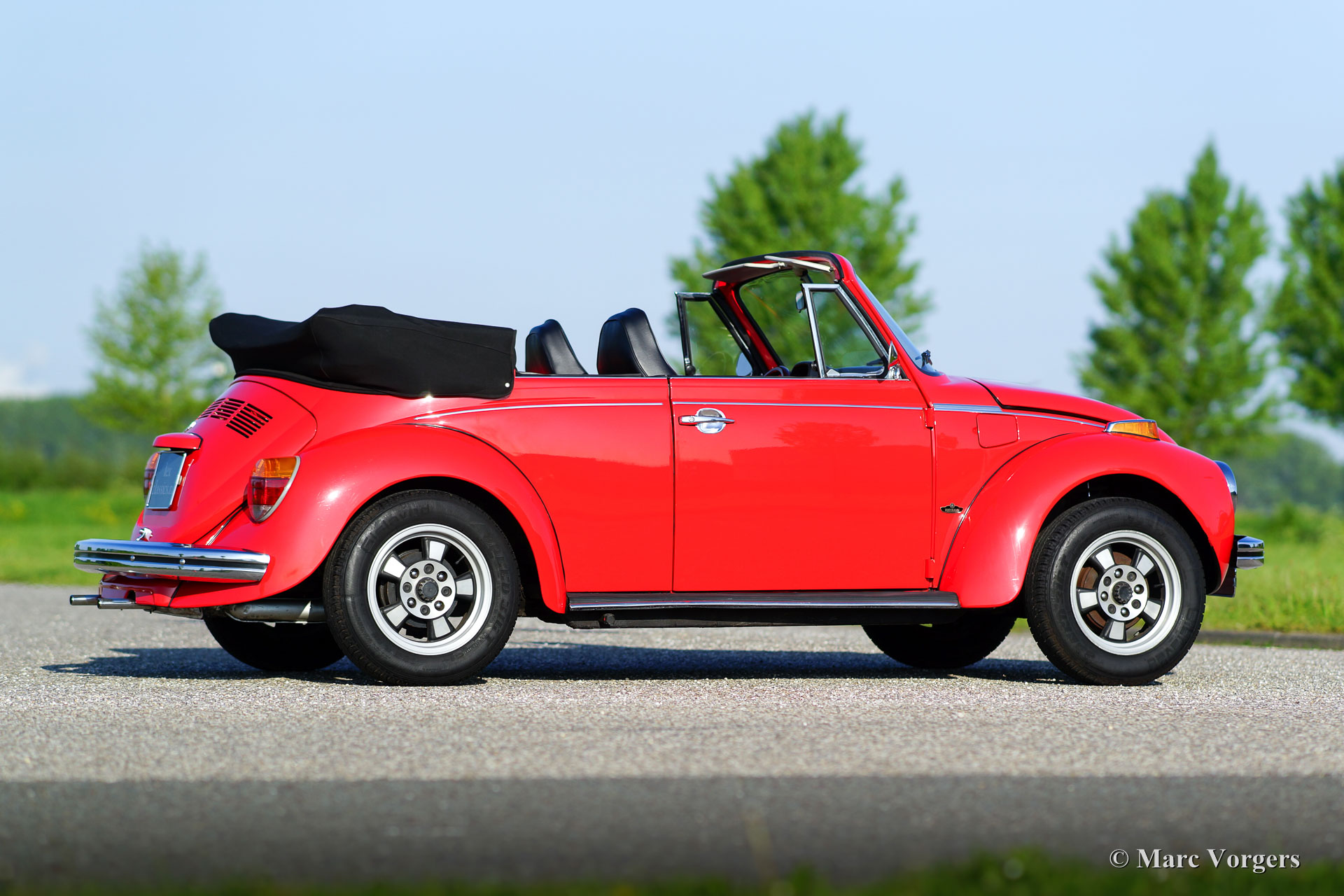 Volkswagen ‘Kever’ 1303 cabriolet, jaar 1973. Kleur rood met een zwart kunstleren interieur en zwart tapijt. Zwarte cabrioletkap en kapafdekking. Deze prachtige VW ‘Kever’ cabriolet verkeert in excellente staat en de auto rijdt voortreffelijk! De Volkswagen is de ideale cabriolet voor het gezin of om met vrienden van open rijden te genieten. Alle inzittenden zitten met een brede glimlach comfortabel uit de wind alle opgestoken duimen in ontvangst te nemen! Deze ‘Kever’ 1303 is voorzien van een krachtigere 1.493 cc motor, waardoor de auto net wat meer ‘pep’ heeft. De mooie lichtmetalen velgen maken deze Kever tot een sportieve verschijning. Een klassieke ‘evergreen’!