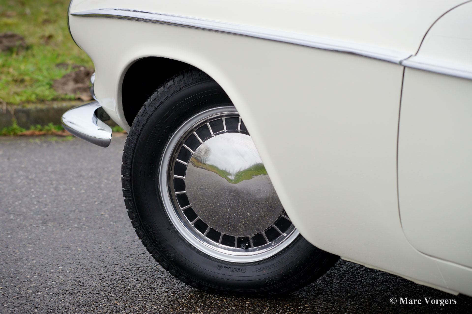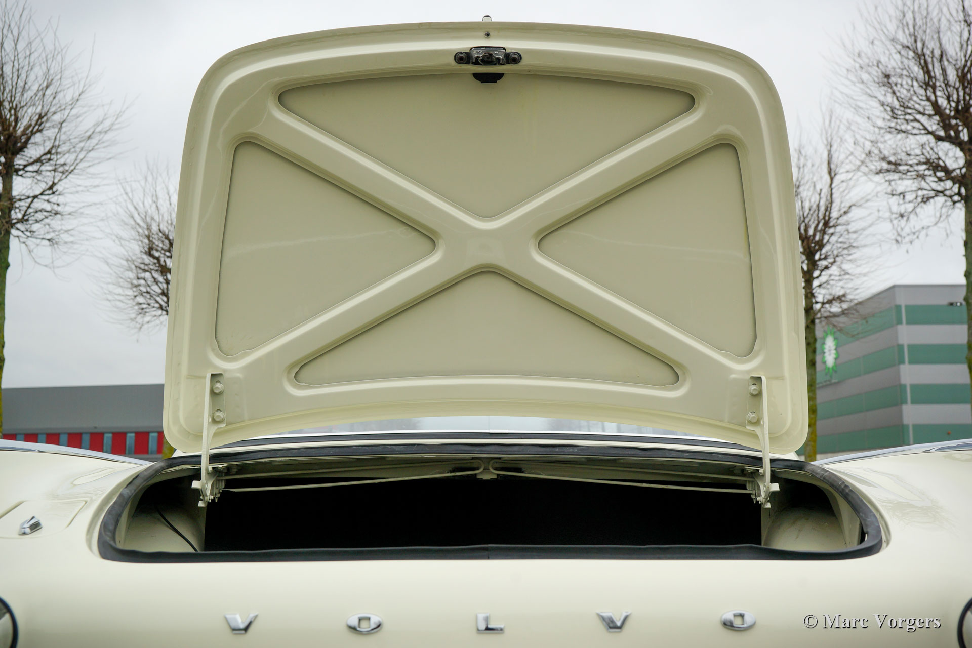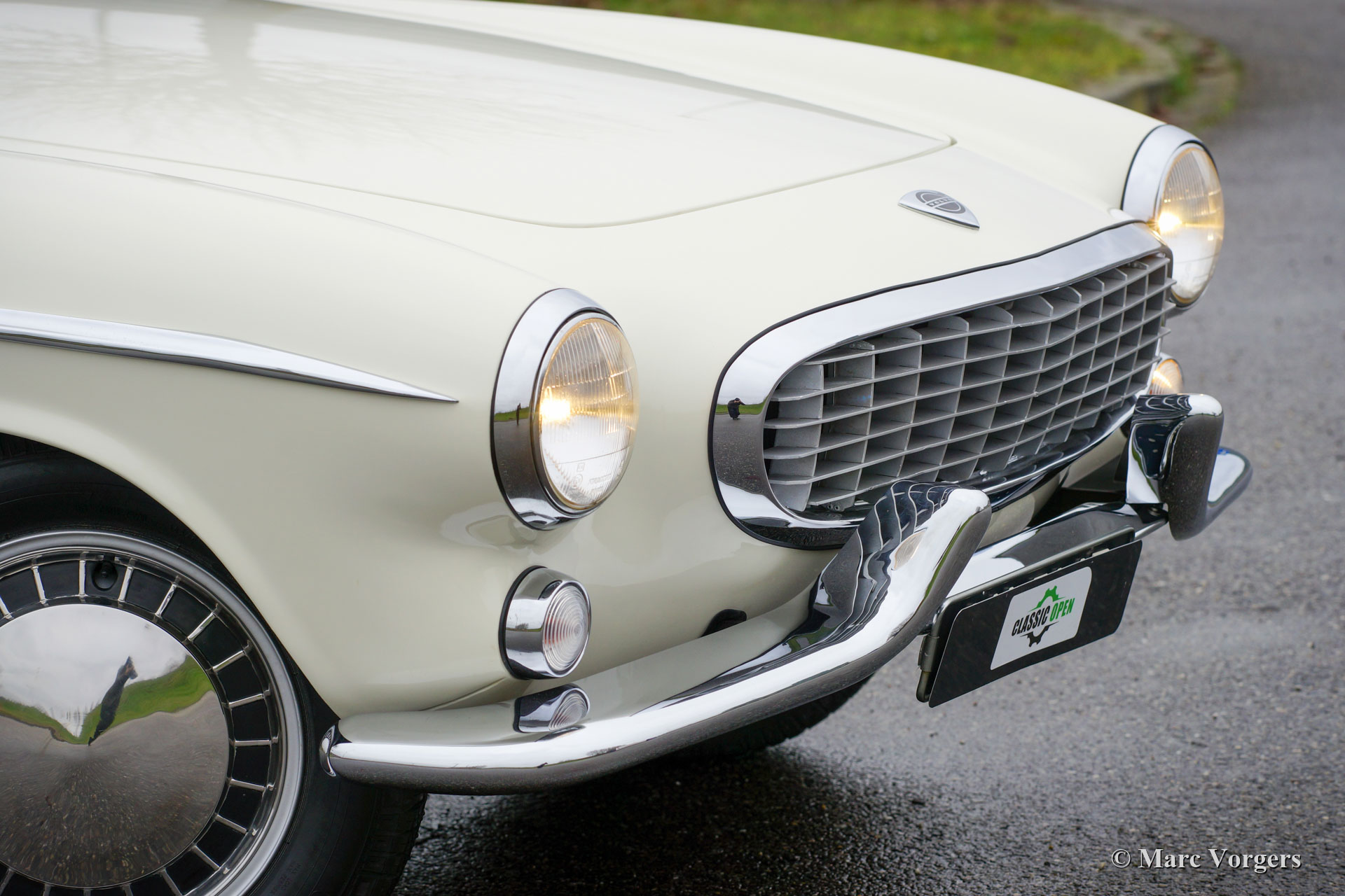 Volvo P1800 Jensen, jaar 1963. Kleur wit ‘California white’ (kleurcode 42) gecombineerd met een rood interieur (code 302) en grijs tapijt. Deze prachtige Volvo P1800 is een originele P1800 met een carrosserie gebouwd door Jensen in het Verenigd Koninkrijk. Er zijn slechts 6000 P1800 auto's gebouwd door Jensen, dit exemplaar is nummer 4851. De auto is in het jaar 2000 naar Nederland geïmporteerd en in 2016 door de huidige eigenaar aangekocht. Vanaf dat jaar is een uitgebreide restauratie gestart die onlangs is afgerond. De auto is gerestaureerd naar fabriek originele specificaties, afgezien van de montage van een moderne rembekrachtiger. Alles is nagekeken, gereviseerd en of gerestaureerd, alleen onderdelen die niet meer te repareren waren werden vernieuwd door Volvo kwaliteitsonderdelen van VP Autoparts in Zweden. De carrosserie is van het blanke metaal gerestaureerd door de firma Hogenboom en afgewerkt met een hoogwaardig laksysteem. Het interieur is volledig nieuw bekleed naar originele specificaties en de dashboard instrumenten zijn gereviseerd. Al het chroom van onder andere de bumpers is perfect opnieuw verchroomd in het Verenigd Koninkrijk. De mechanica zoals motor, overdrive, remmen, carburateurs, startmotor, dynamo, remmen en wielophanging zijn compleet gereviseerd. De versnellingsbak en het differentieel bleken in uitstekende staat te verkeren, deze zijn nagekeken, gereinigd, en voorzien van nieuwe afdichtingen. De motor is voorzien van op maat gemaakte CP-zuigers en een gemodificeerde (duurzamere) achterste oliekeerring. Verder is de kabelboom vernieuwd, zijn de remleidingen vernieuwd, zijn alle rubberen delen vernieuwd, is de brandstoftank vernieuwd en heeft de carrosserie een geluiddempende behandeling en transparante anti-corrosie bescherming gekregen. Deze prachtige Volvo P1800 is uitgerust met de zeldzame originele wieldoppen, de originele FIAMM-luchthoorns, een rvs-uitlaatsysteem en een klassieke Blaupunkt Münster autoradio met FM-ontvangst. Deze prachtige Volvo P1800 verkeert in HAGELNIEUWE conditie en ziet er precies zo uit zoals deze in 1963 de fabriekspoorten van Volvo heeft verlaten! Een fantastisch exemplaar voor de Volvo verzamelaar en P1800 liefhebber!
