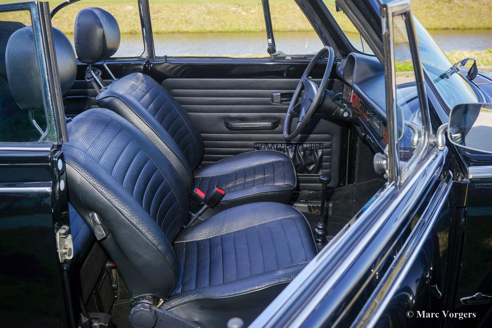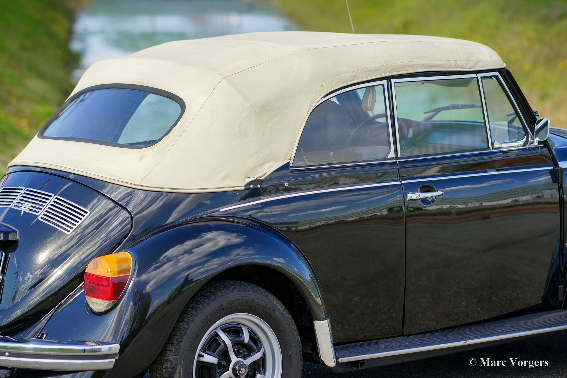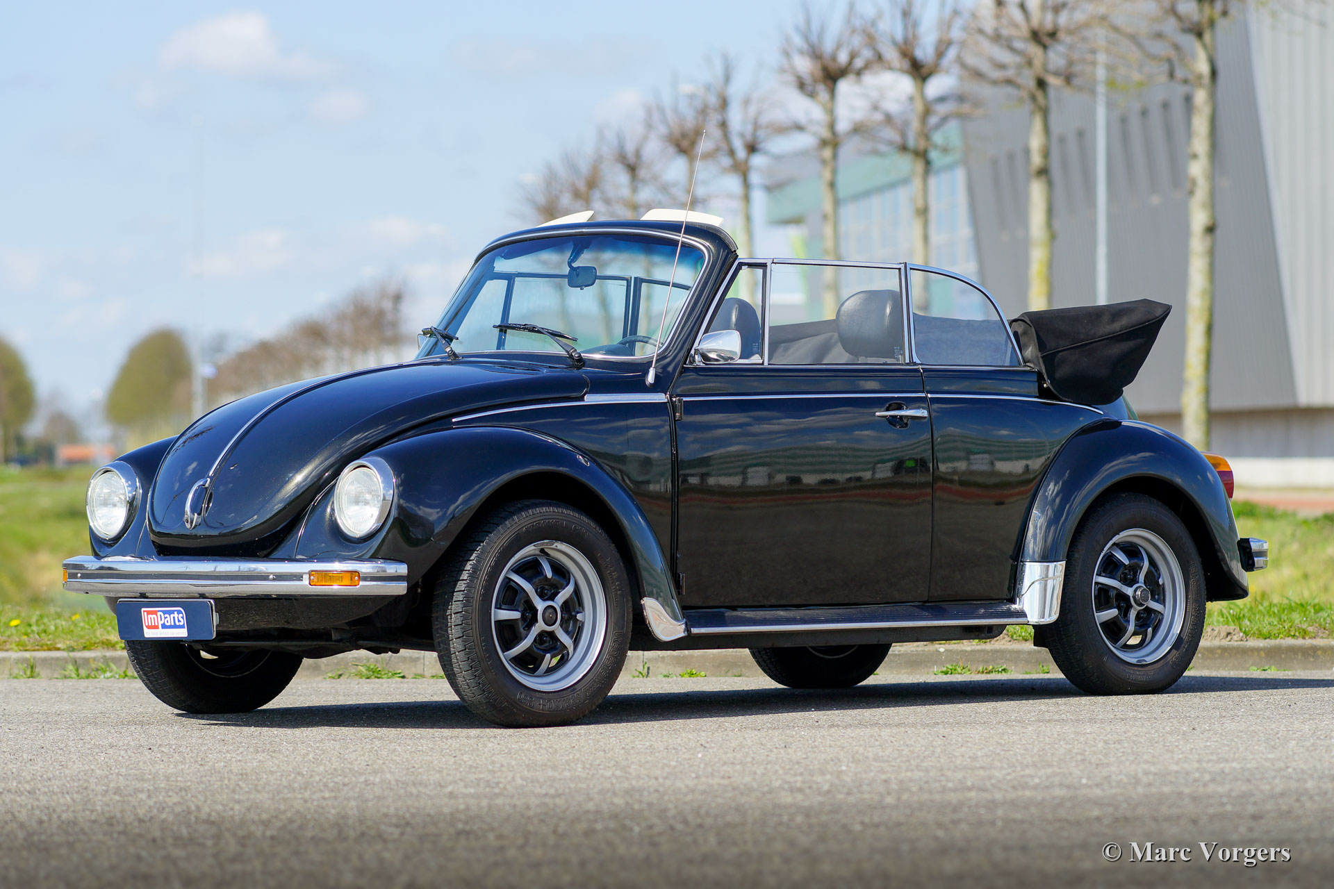 Volkswagen Kever 1303 Cabriolet, jaar 1978. Kleur zwart metallic gecombineerd met een zwart kunstlederen interieur, zwart tapijt, een beige kap en een zwarte kapafdekking. Deze prachtige VW Kever 1303 Cabriolet verkeert in een zeer goede tot excellente conditie en de auto rijdt perfect. De auto is recentelijk voorzien van prachtige nieuwe lak. Het originele interieur verkeert in uitstekende staat met slechts lichte sporen van gebruik. In de kofferbak en in de motorruimte ziet alles er prachtig verzorgd uit. De 1600 cc luchtgekoelde viercilinder boxermotor loopt en klinkt perfect en de auto stuurt, schakelt en remt zeer goed. De VW Kever is een icoon en de cabriolet is het topmodel van de serie. De VW Kever cabriolet is een geweldige auto om met 4-5 personen te genieten van weekendritten en om samen te genieten van zonnige vakantiereizen! Dit is een prachtig exemplaar voor de echte liefhebber.