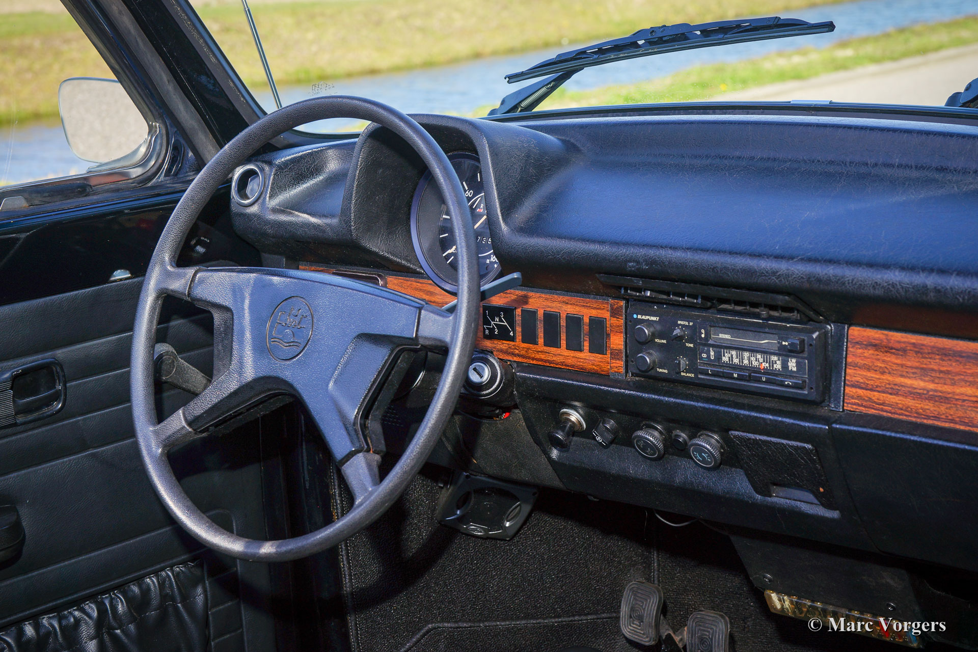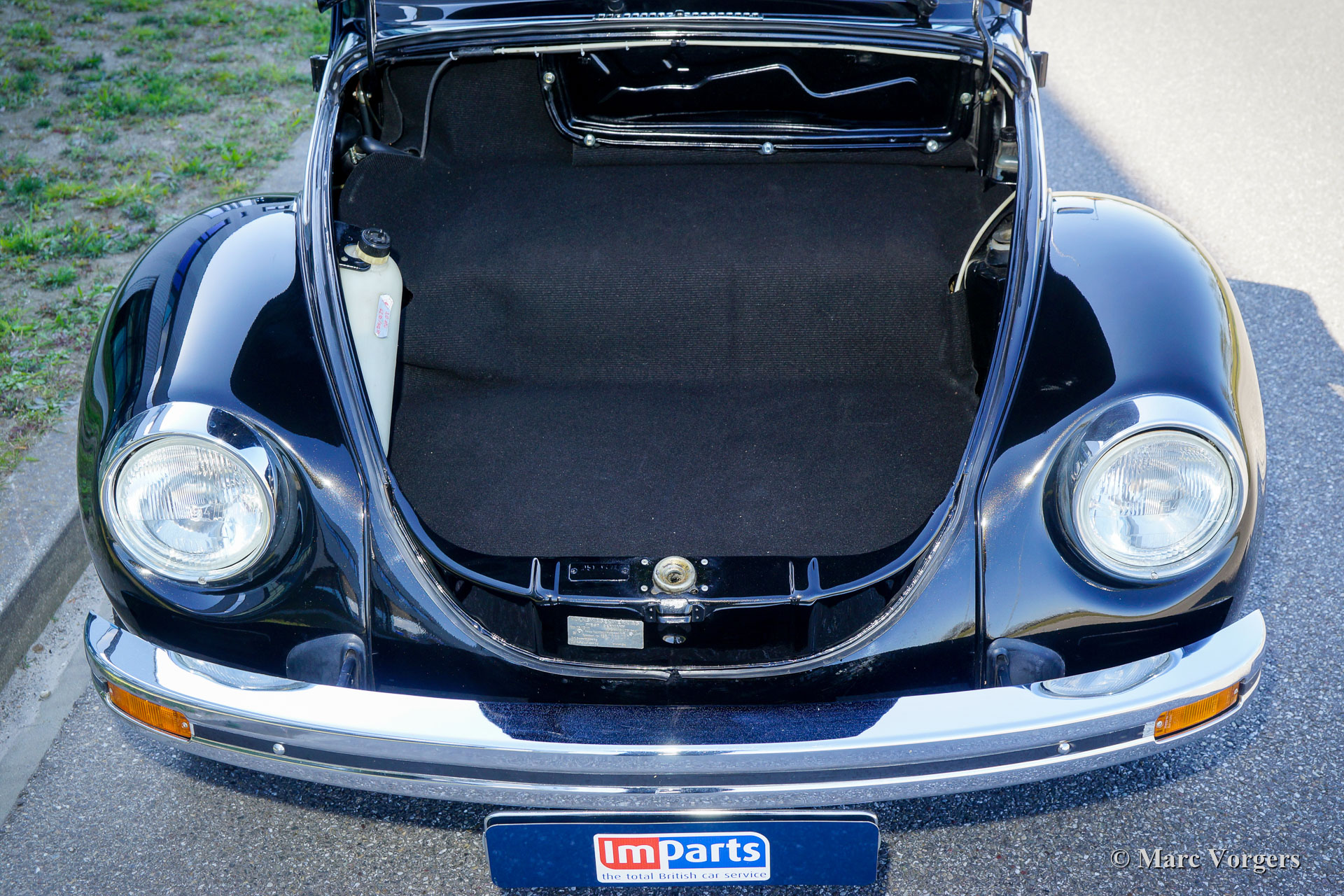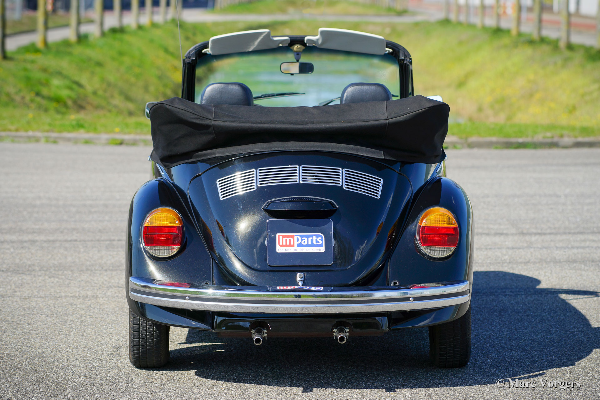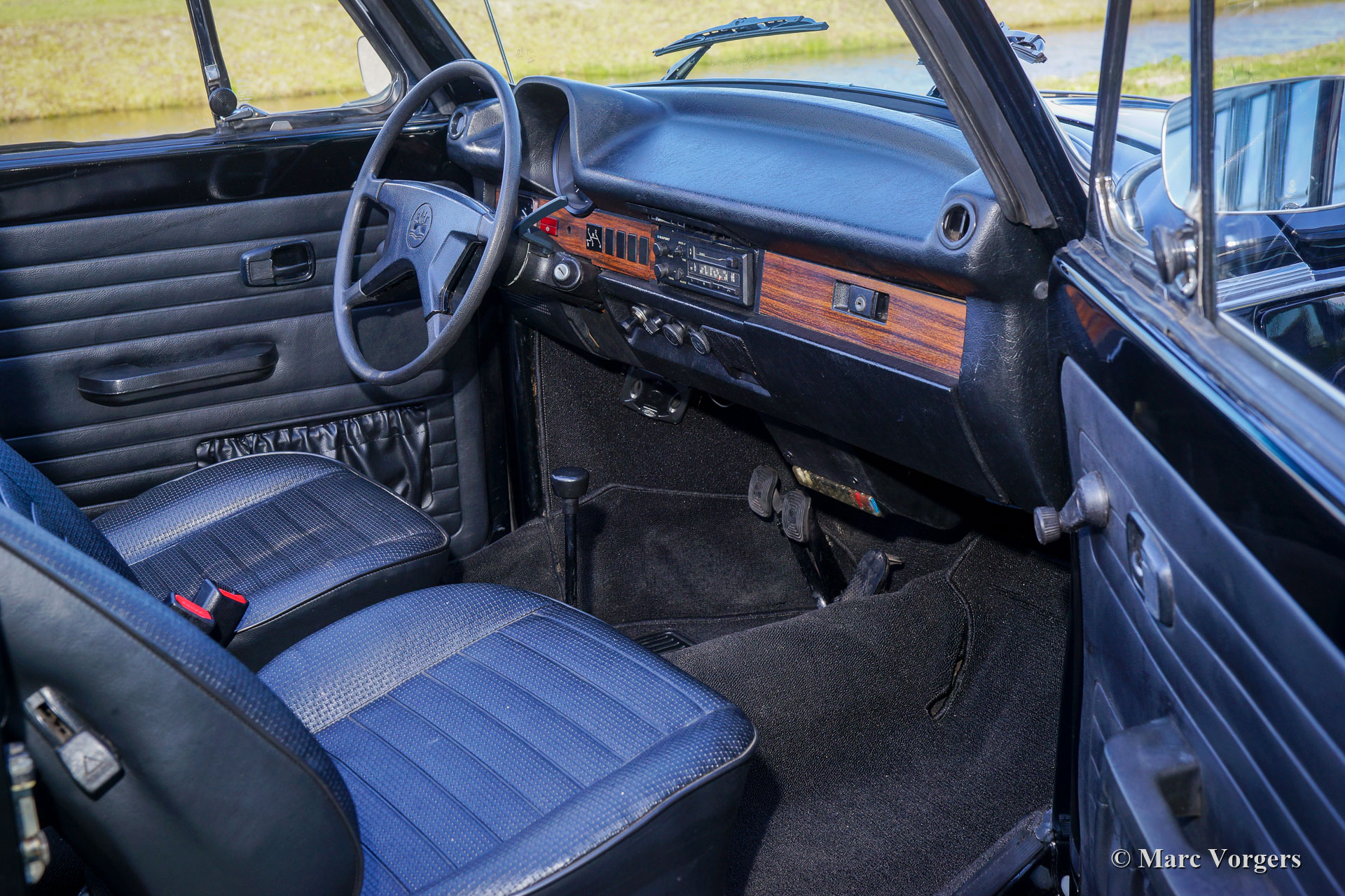 Volkswagen Kever 1303 Cabriolet, jaar 1978. Kleur zwart metallic gecombineerd met een zwart kunstlederen interieur, zwart tapijt, een beige kap en een zwarte kapafdekking. Deze prachtige VW Kever 1303 Cabriolet verkeert in een zeer goede tot excellente conditie en de auto rijdt perfect. De auto is recentelijk voorzien van prachtige nieuwe lak. Het originele interieur verkeert in uitstekende staat met slechts lichte sporen van gebruik. In de kofferbak en in de motorruimte ziet alles er prachtig verzorgd uit. De 1600 cc luchtgekoelde viercilinder boxermotor loopt en klinkt perfect en de auto stuurt, schakelt en remt zeer goed. De VW Kever is een icoon en de cabriolet is het topmodel van de serie. De VW Kever cabriolet is een geweldige auto om met 4-5 personen te genieten van weekendritten en om samen te genieten van zonnige vakantiereizen! Dit is een prachtig exemplaar voor de echte liefhebber.