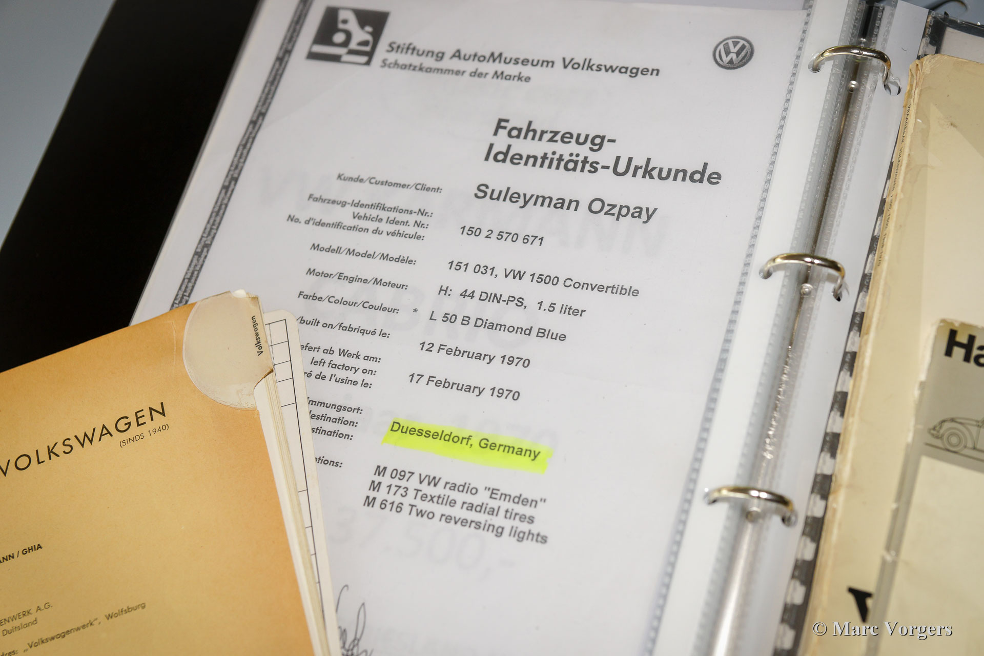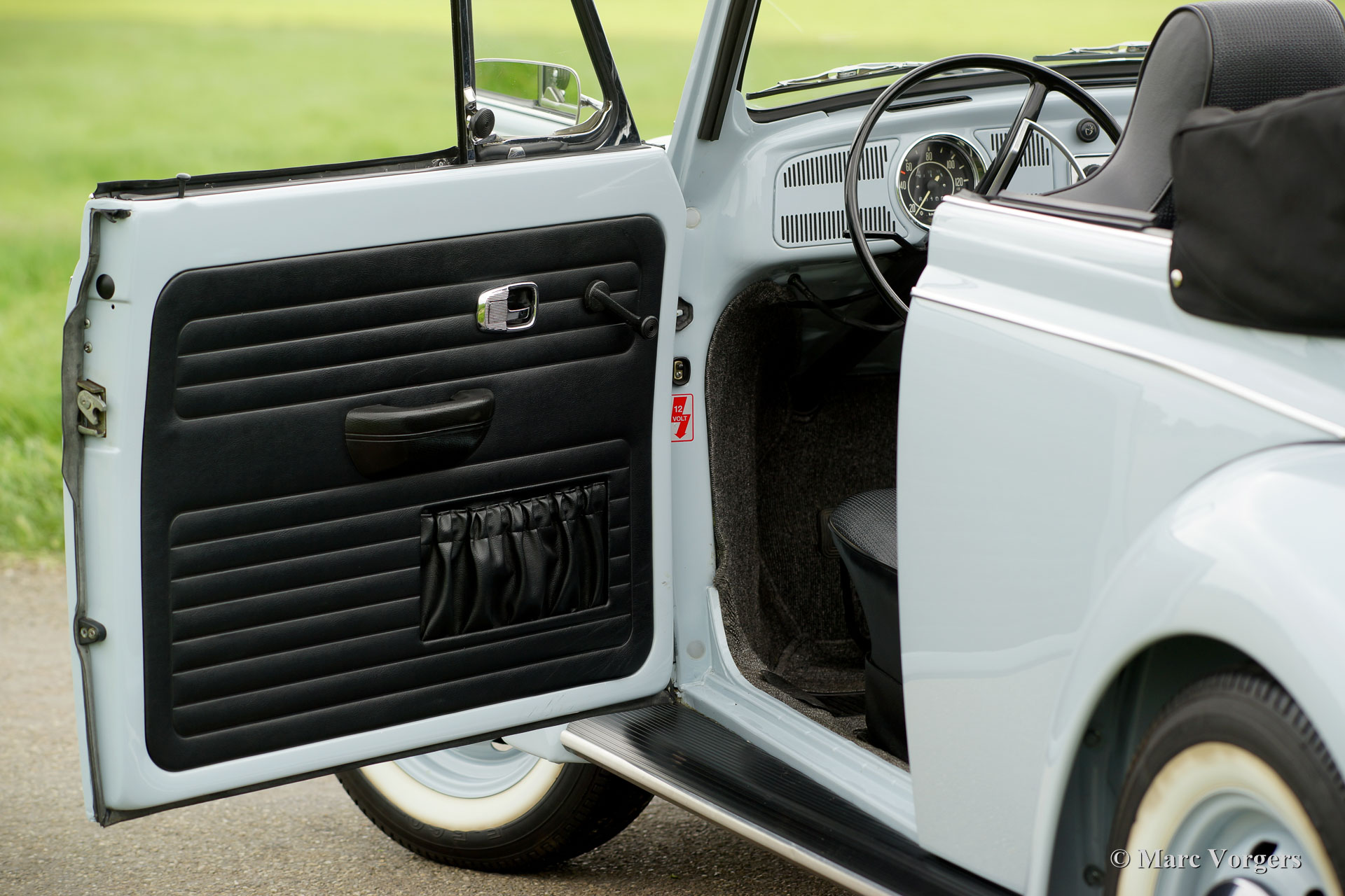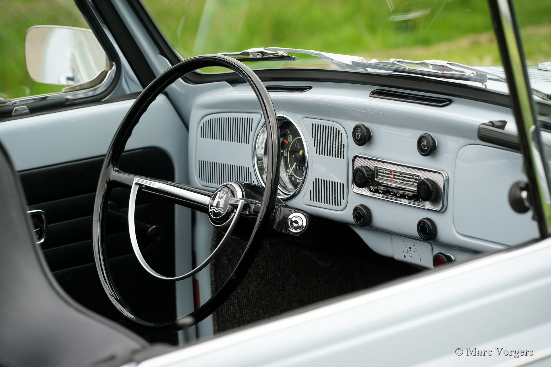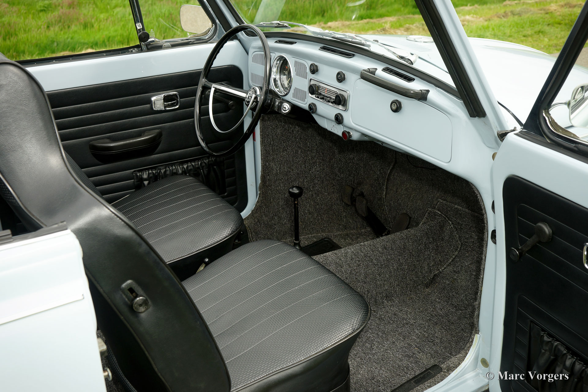 VW 'Kever' 1500 cabriolet, jaar 1970. Kleur Diamant Blauw (VW-kleurcode LB 50) gecombineerd met een zwart kunstleren interieur. Zwarte vinyl Sonnenland-kap en een zwarte kapafdekhoes. Deze prachtige Volkswagen 'Kever' is super origineel, de auto heeft ‘matching numbers’ (chassis, motor, versnellingsbak allemaal origineel af fabriek) en de originele kleuren! Deze prachtige Volkswagen 'Kever' werd nieuw verkocht in Duitsland, de auto is de afgelopen jaren in Nederland uitvoerig en fraai gerestaureerd. Deze VW-cabriolet verkeert in sublieme staat (concours) en de auto rijdt voortreffelijk! De auto wordt geleverd met Nederlandse instructieboekjes en een kopie van het VW ‘geboorte’-document. De auto is momenteel geregistreerd in Nederland. Dit is een zeer begeerlijke Volkswagen ‘Kever’ cabriolet!